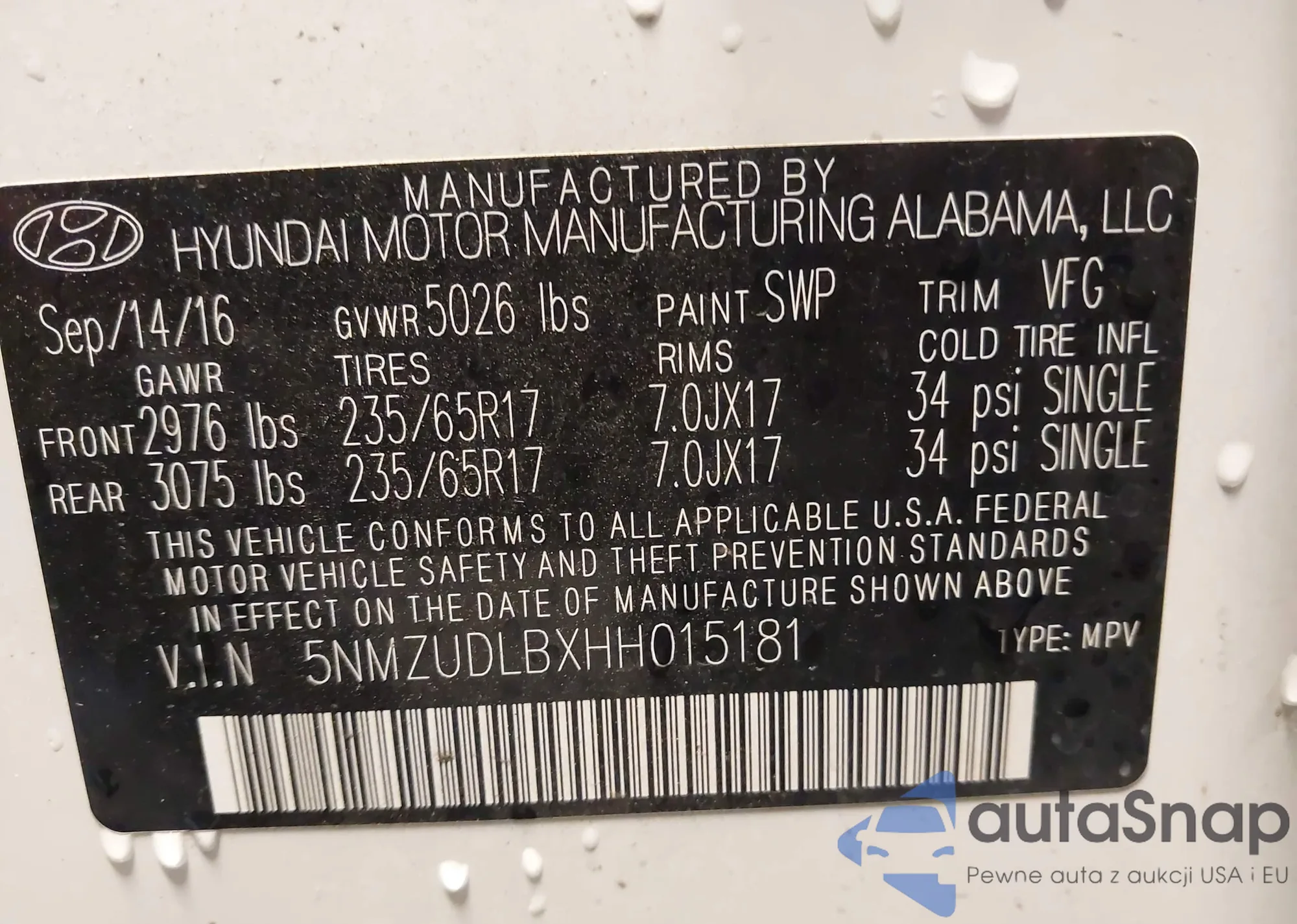 VIN: 5NMZUDLBXHH015181