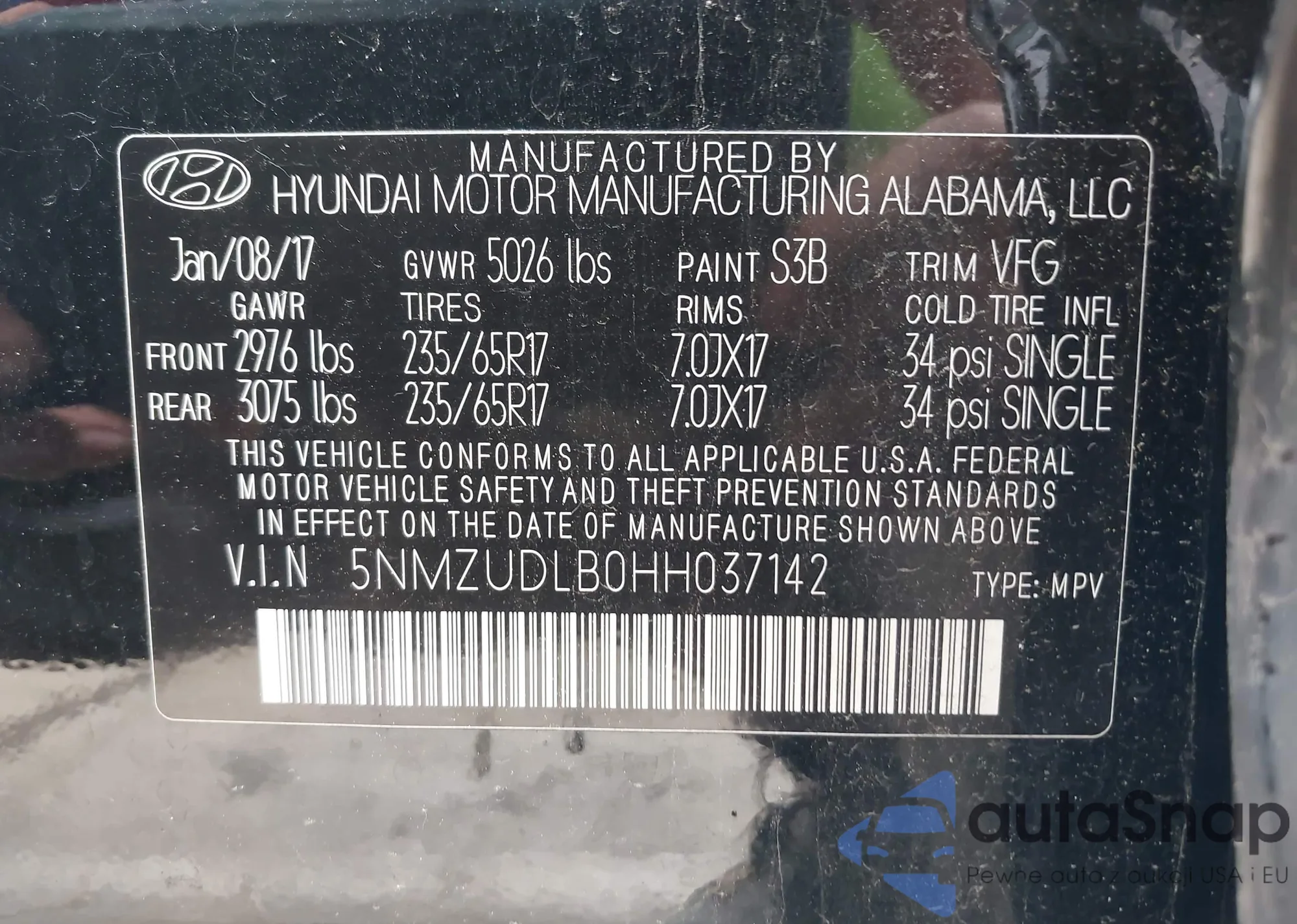 VIN: 5NMZUDLB0HH037142