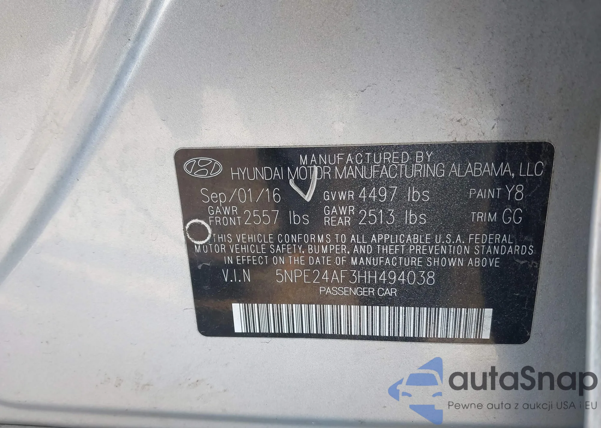 VIN: 5NPE24AF3HH494038