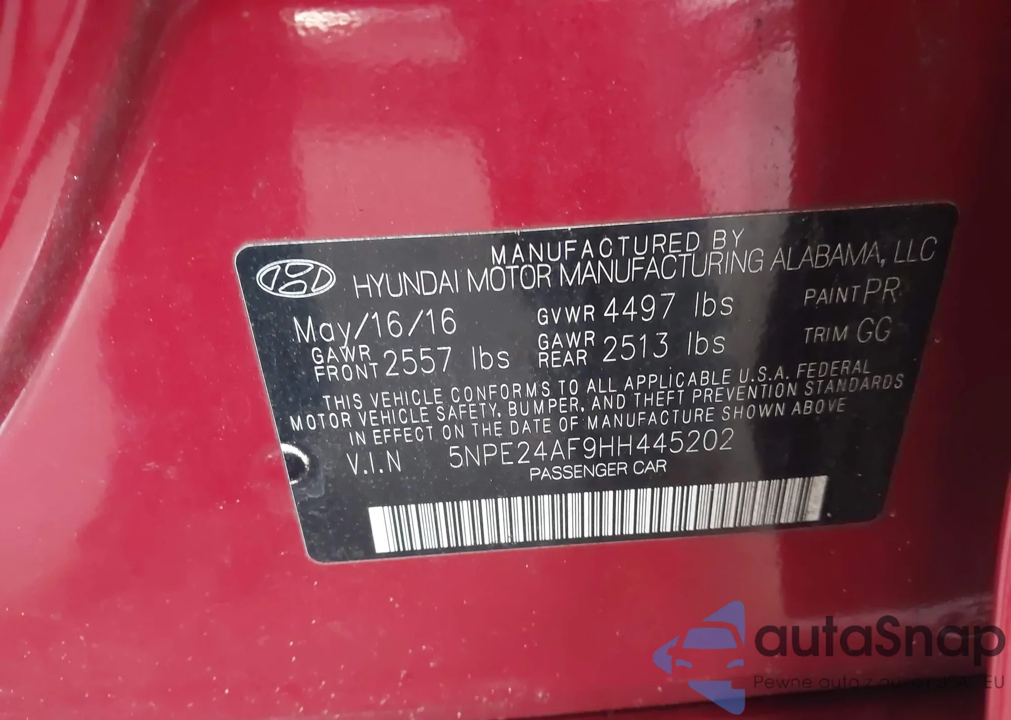 VIN: 5NPE24AF9HH445202