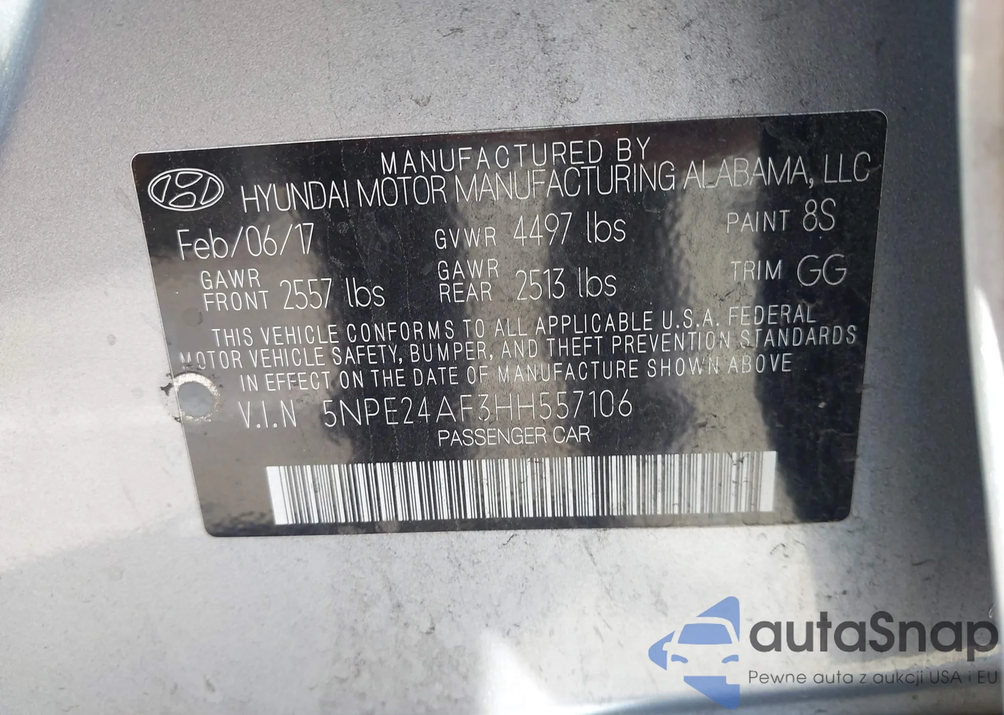 VIN: 5NPE24AF3HH557106
