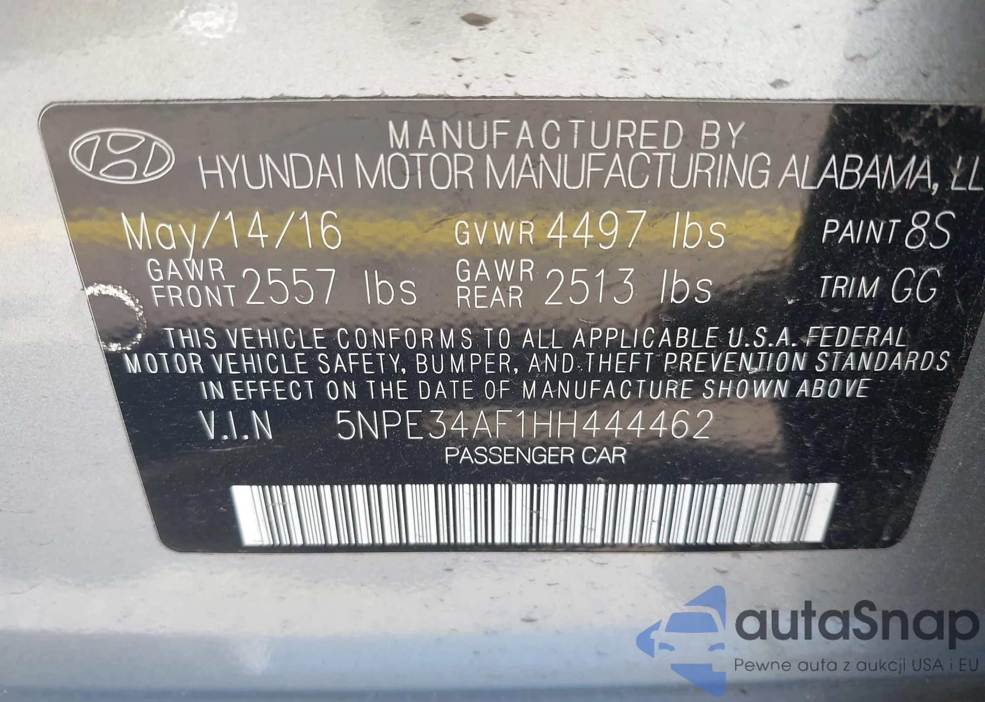 VIN: 5NPE34AF1HH444462