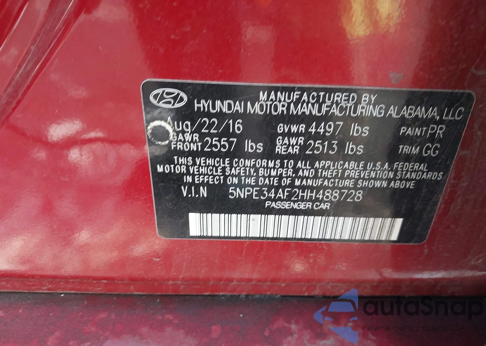 The car Hyundai Sonata 2017 (VIN 5NPE34AF2HH488728) has not been auctioned before. The documents are clean, and the mileage matches or is below the market average. Sold by an insurance company – we recommend purchase. Delivery to the port will take approx. 6–8 weeks.