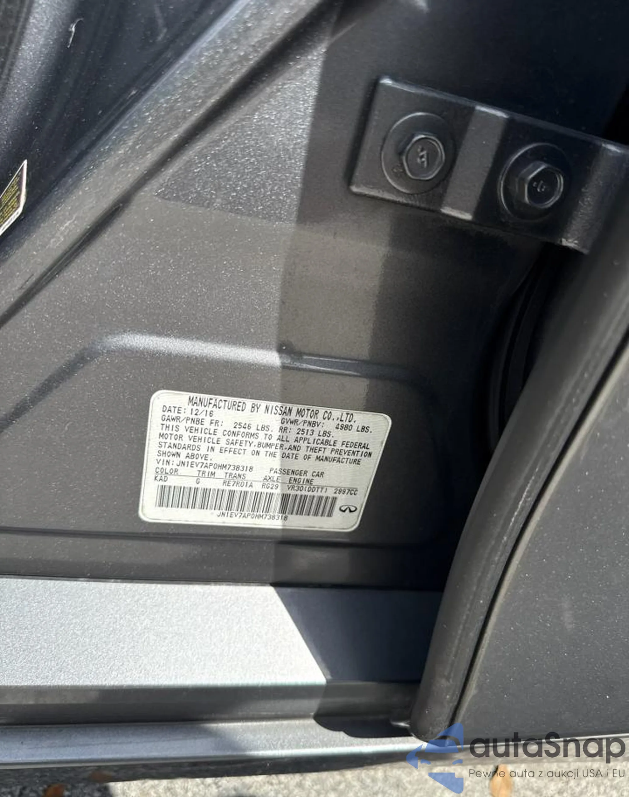 The car Infiniti Q50 2017 (VIN JN1EV7AP0HM738318) has already been auctioned 0 times or is sold by an unverified seller. We recommend checking the Carfax report and confirming registration possibilities before purchase.