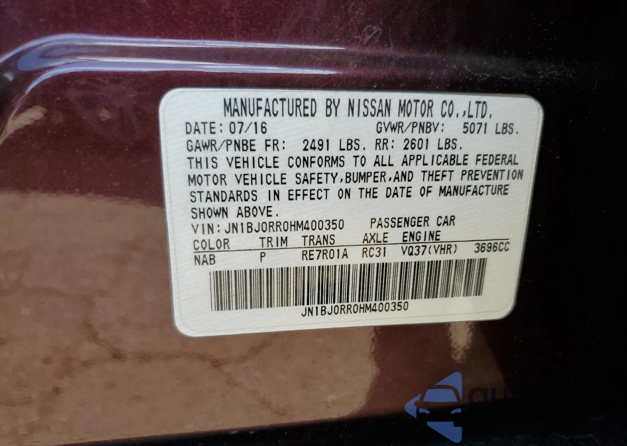 VIN: JN1BJ0RR0HM400350