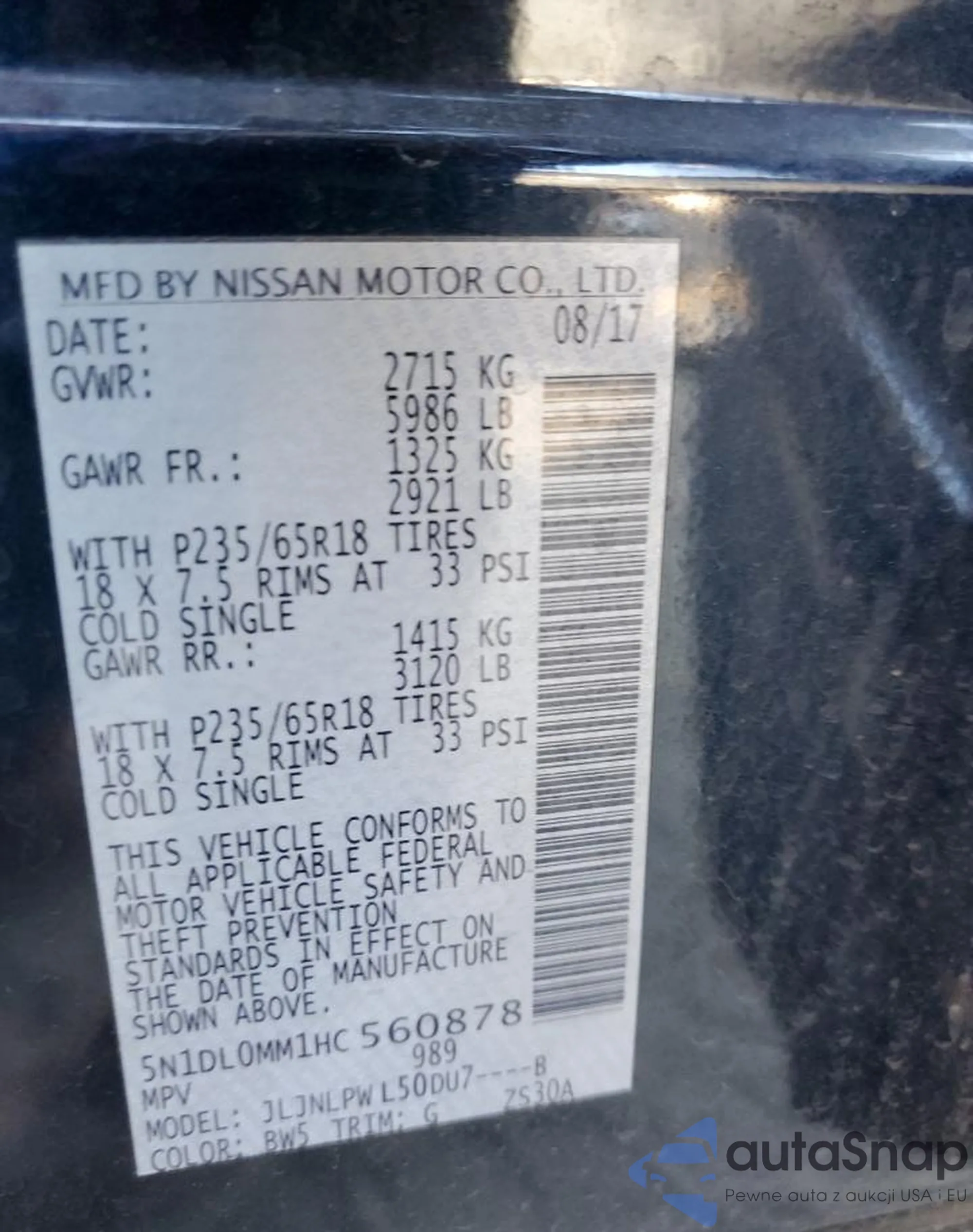 VIN: 5N1DL0MM1HC560878