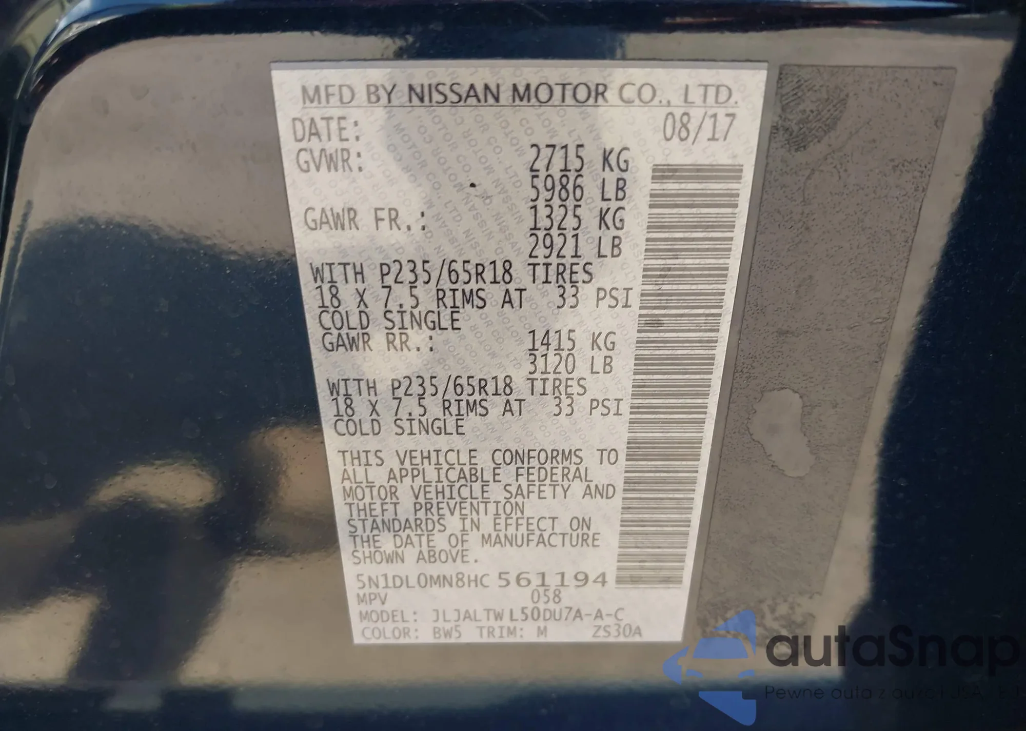 VIN: 5N1DL0MN8HC561194