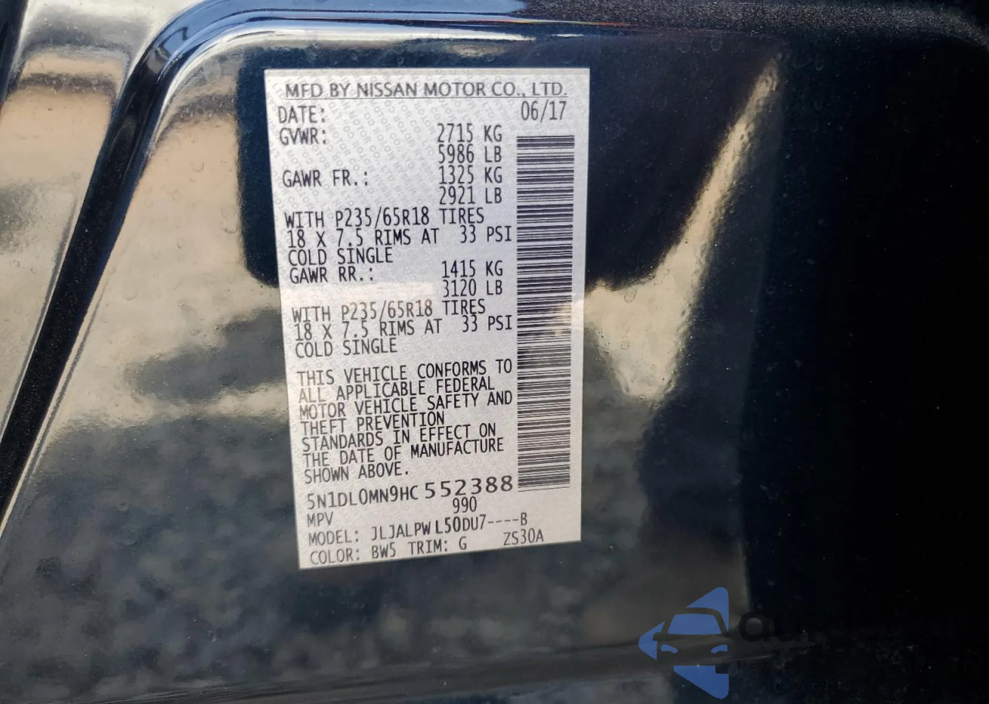 VIN: 5N1DL0MN9HC552388
