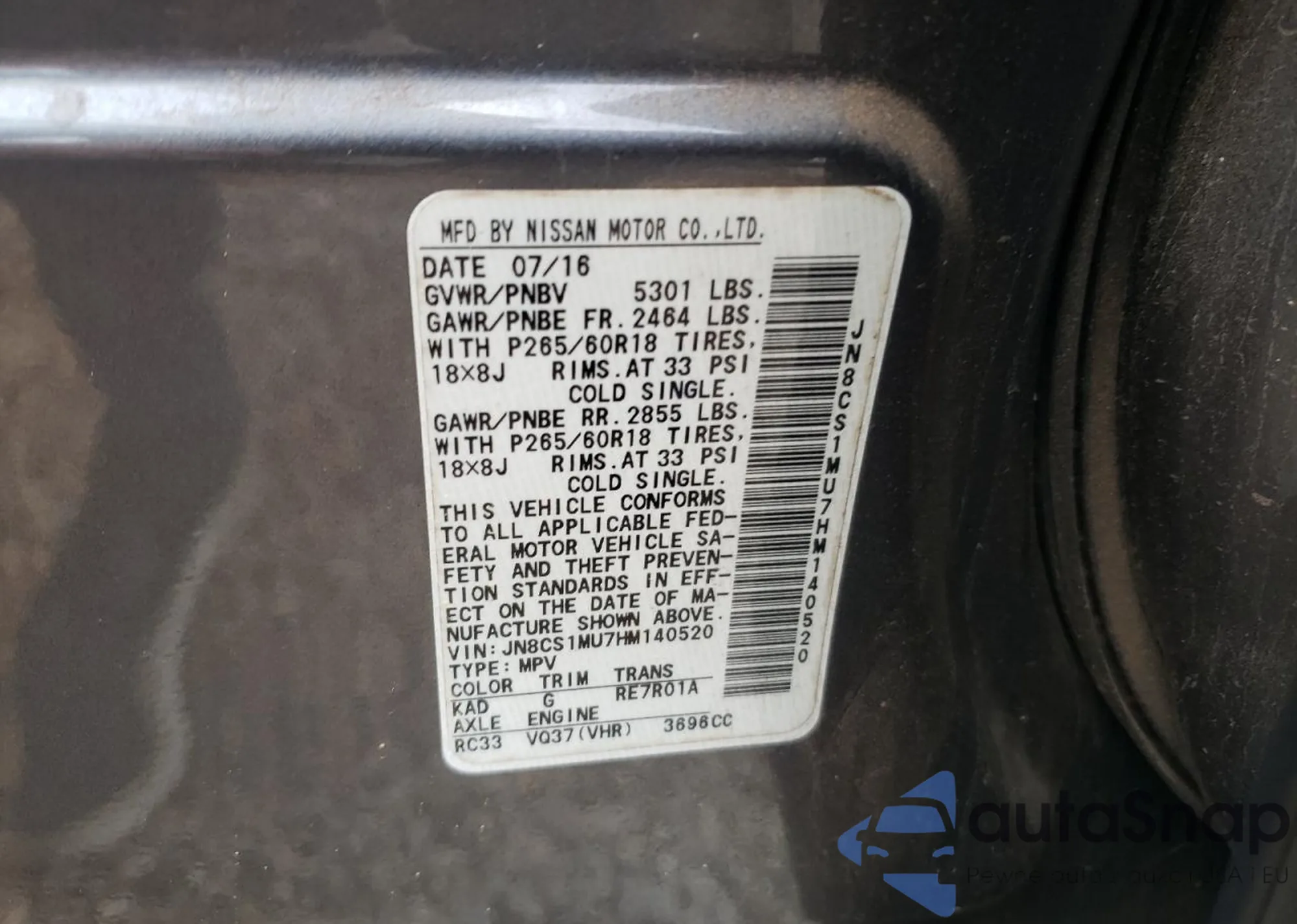 VIN: JN8CS1MU7HM140520