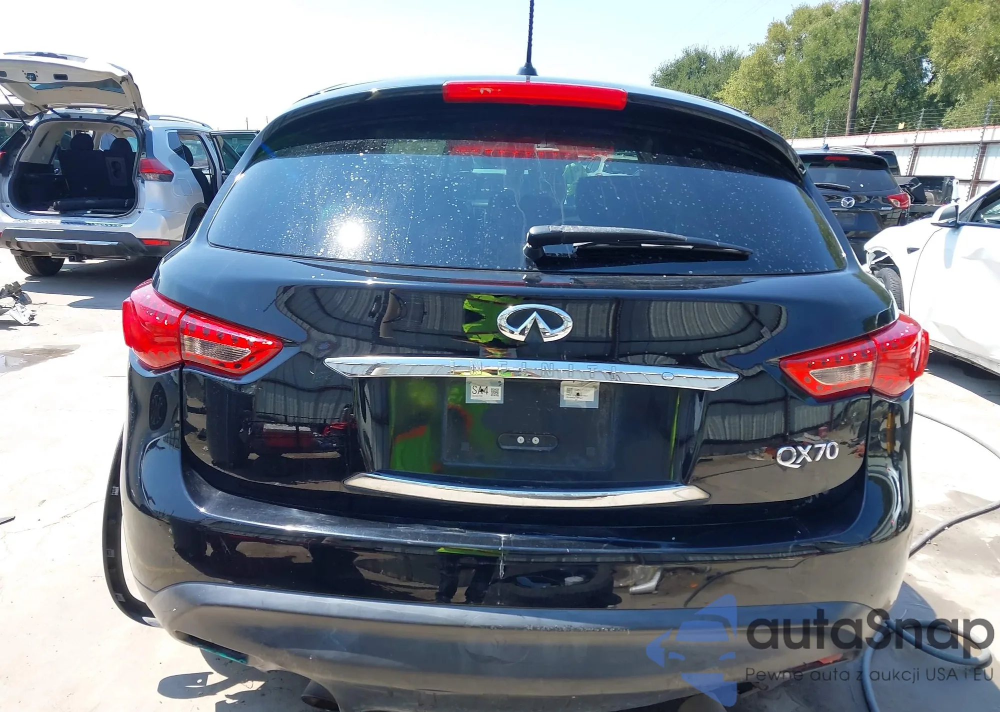 The car Infiniti QX70 2017 (VIN JN8CS1MUXHM141113) has documents that prevent registration. Export and registration may be difficult. Contact AutaSnap experts to find alternatives.