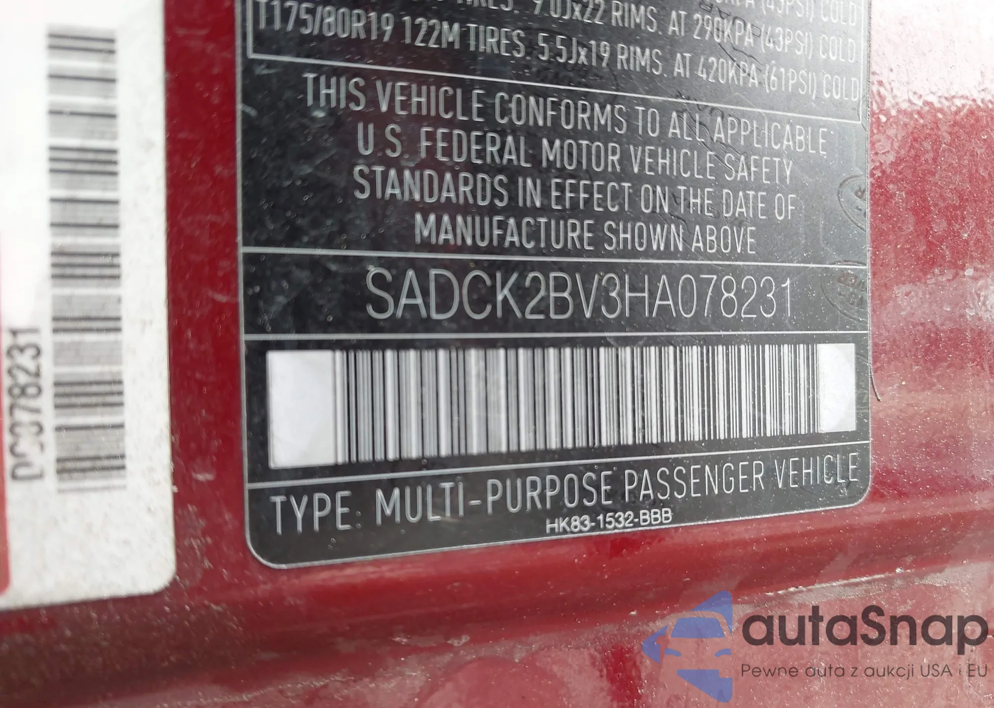 • VIN: SADCK2BV3HA078231