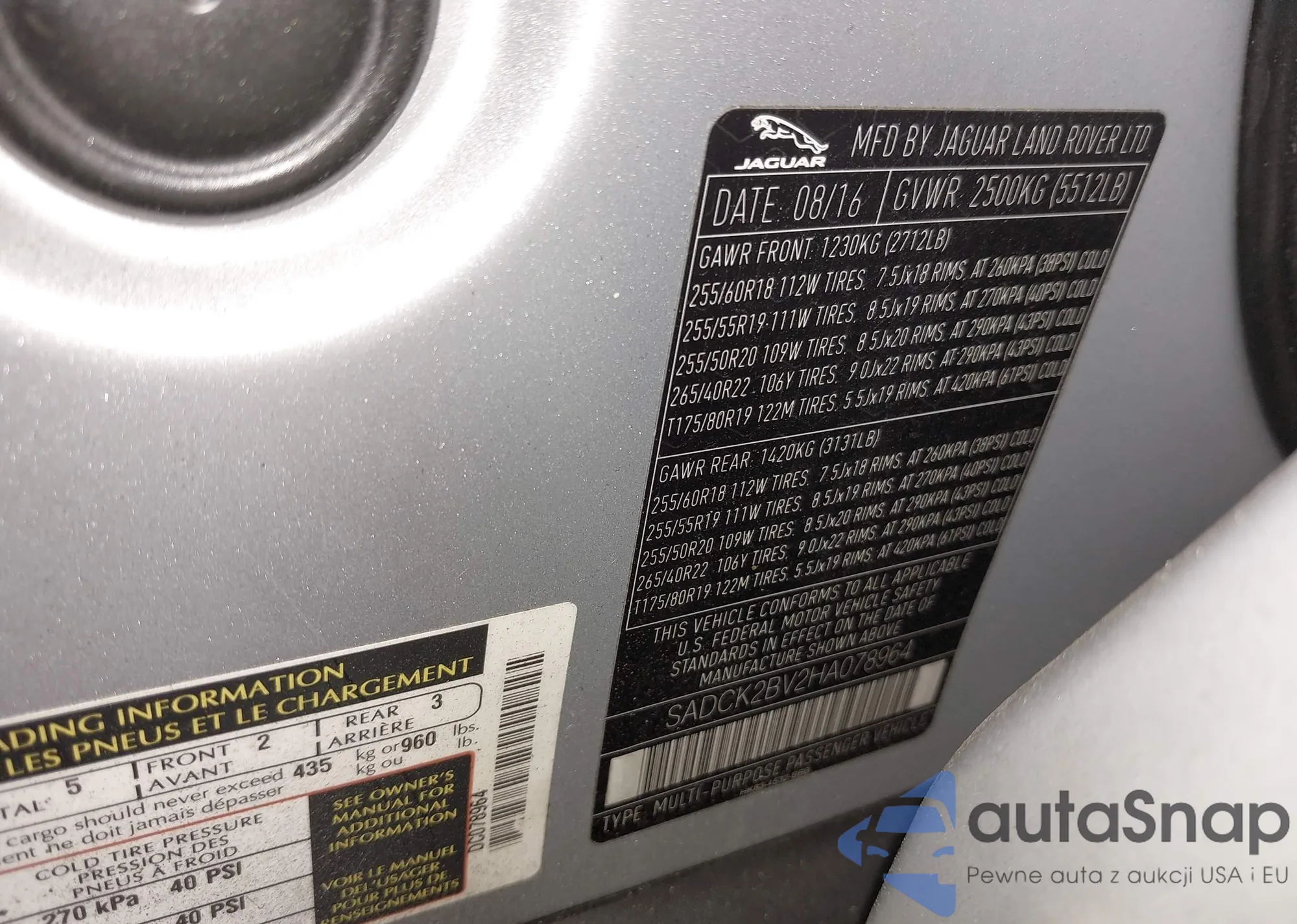 Jaguar F-Pace 2017 – Vehicle History (Sold at IAAI)