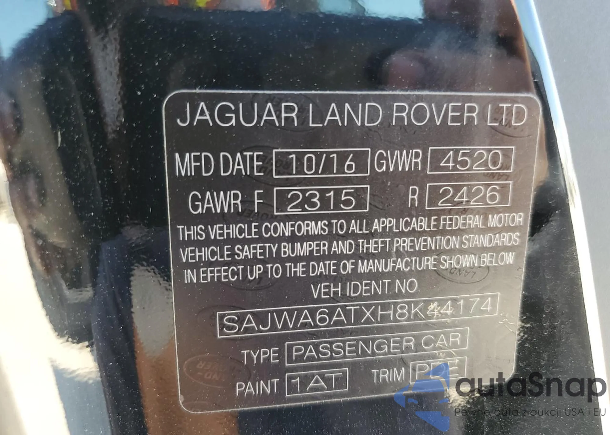 The car Jaguar F-Type 2017 (VIN SAJWA6ATXH8K44174) has already been auctioned 0 times or is sold by an unverified seller. We recommend checking the Carfax report and confirming registration possibilities before purchase.