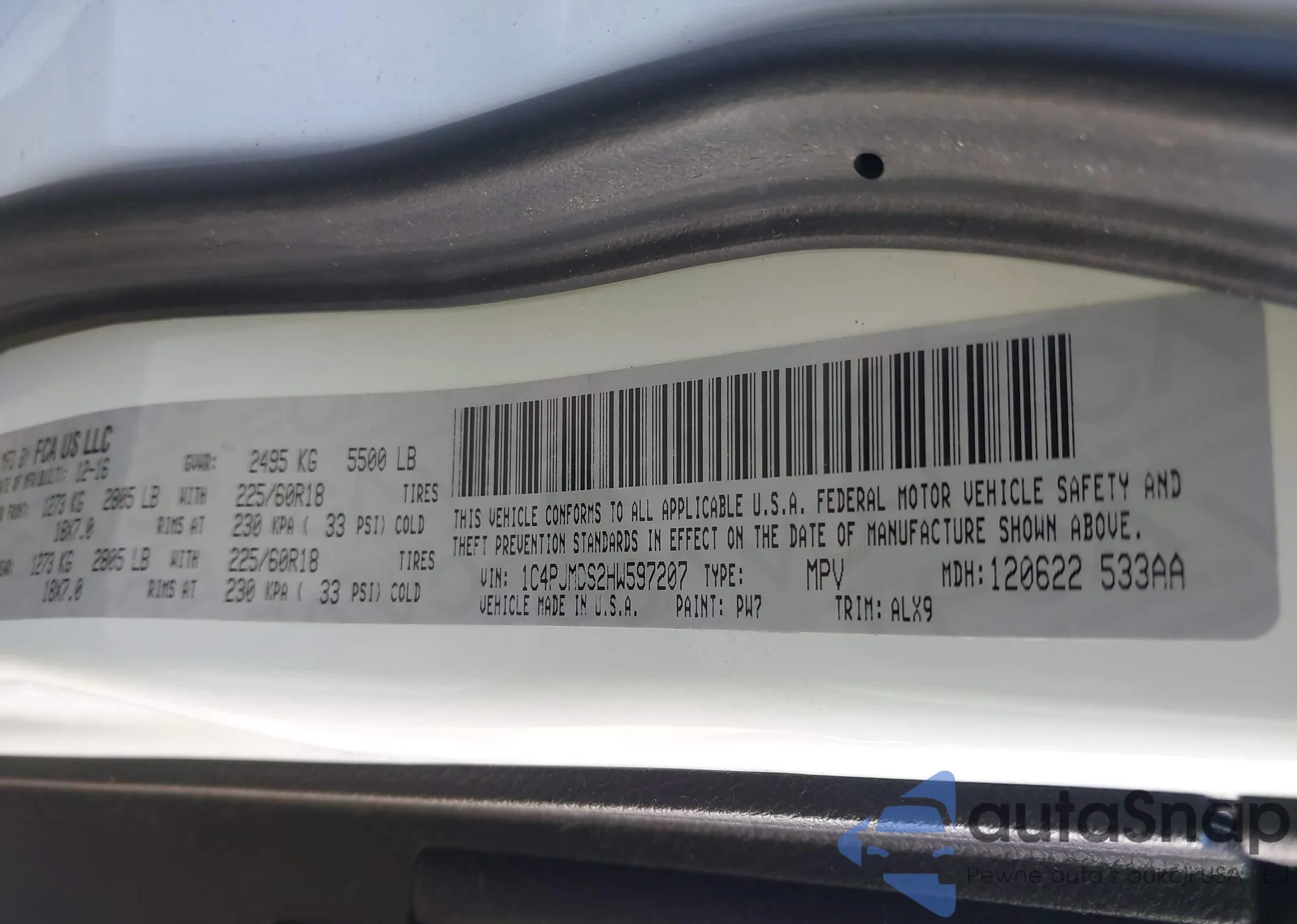 The car Jeep Cherokee 2017 (VIN 1C4PJMDS2HW597207) has not been auctioned before. The documents are clean, and the mileage matches or is below the market average. Sold by an insurance company – we recommend purchase. Delivery to the port will take approx. 6–8 weeks.