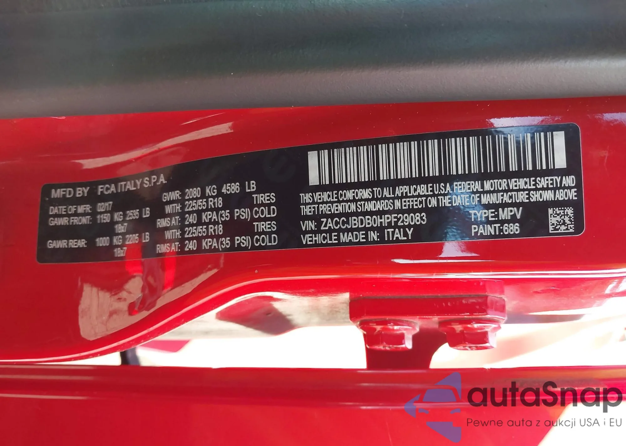 VIN: ZACCJBDB0HPF29083