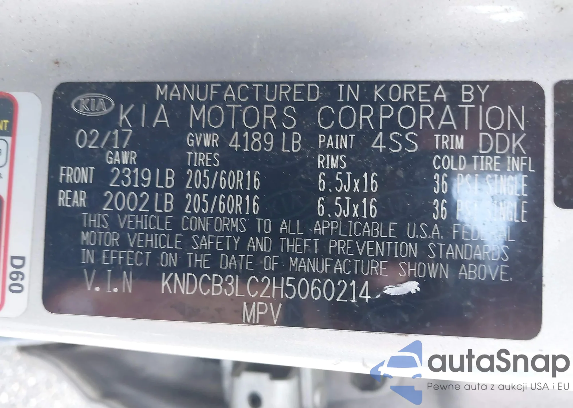 VIN: KNDCB3LC2H5060214