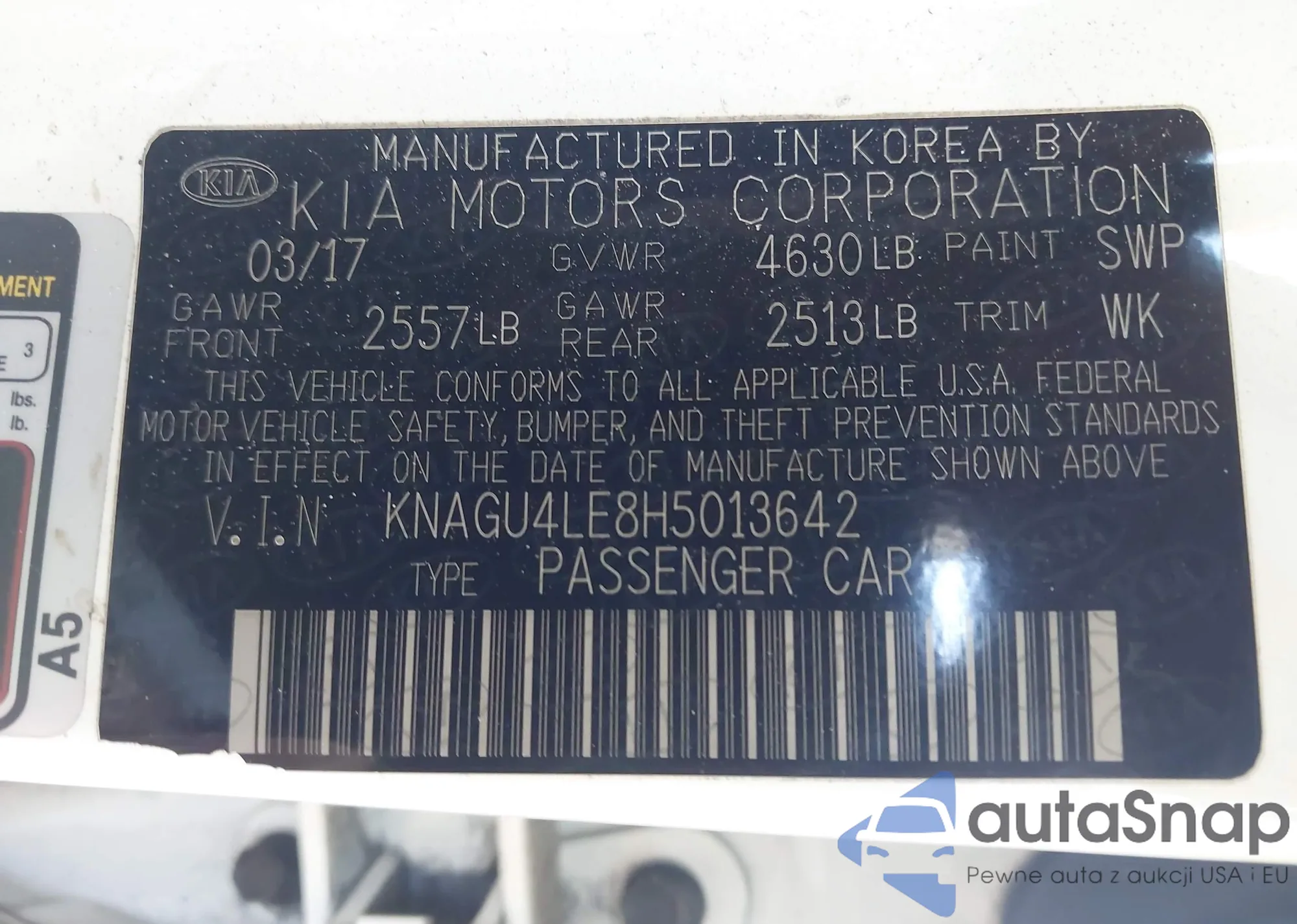 VIN: KNAGU4LE8H5013642
