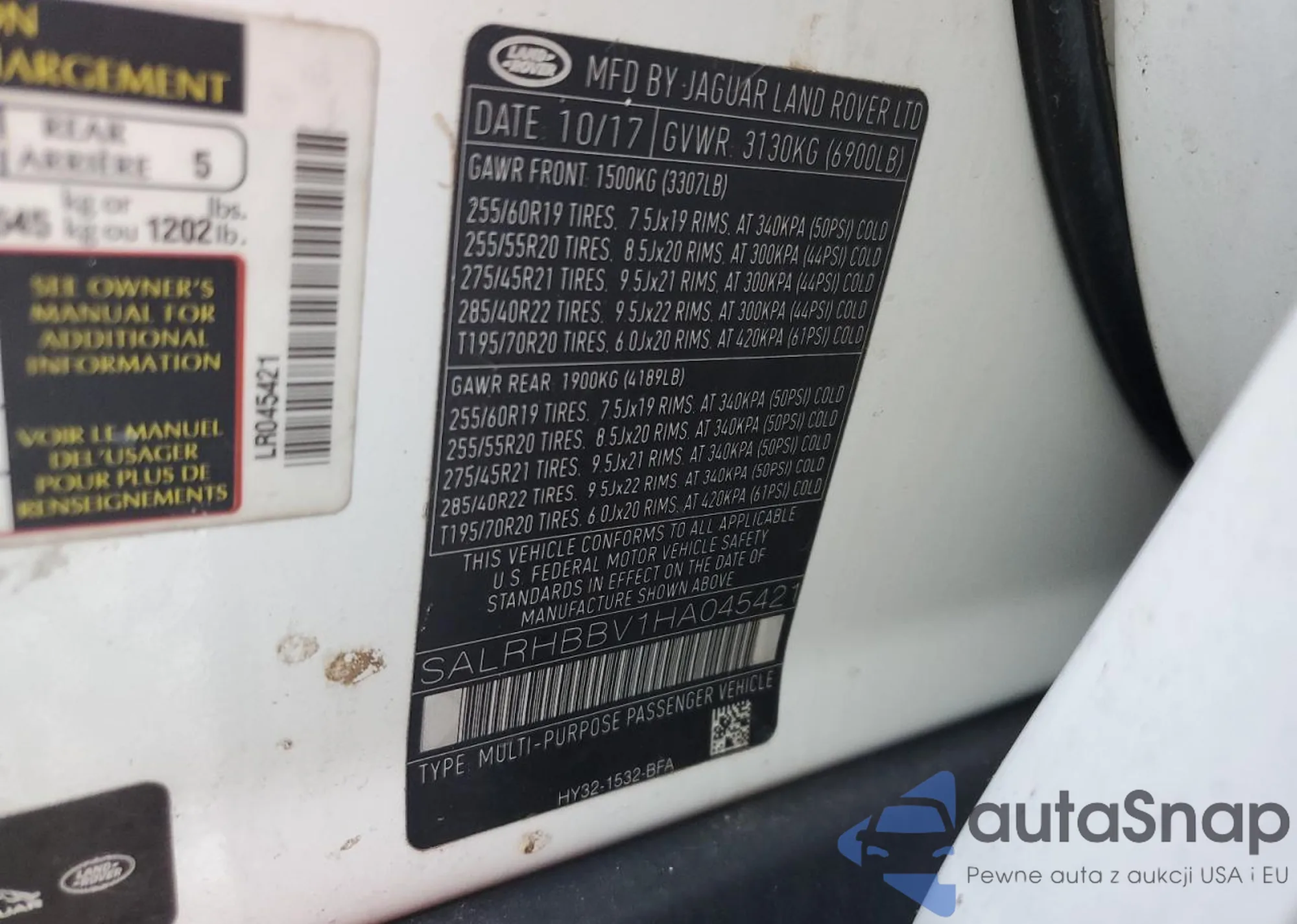 VIN: SALRHBBV1HA045421
