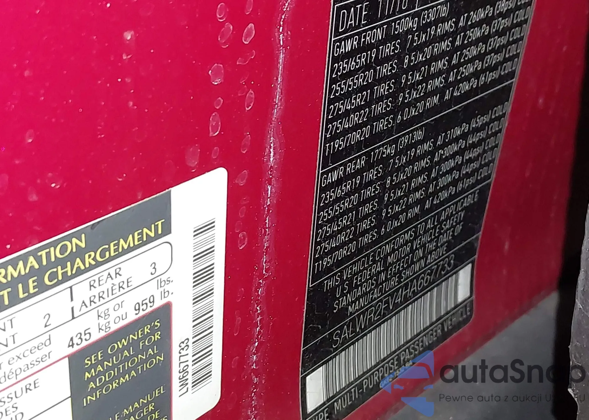 • VIN: SALWR2FV4HA667733