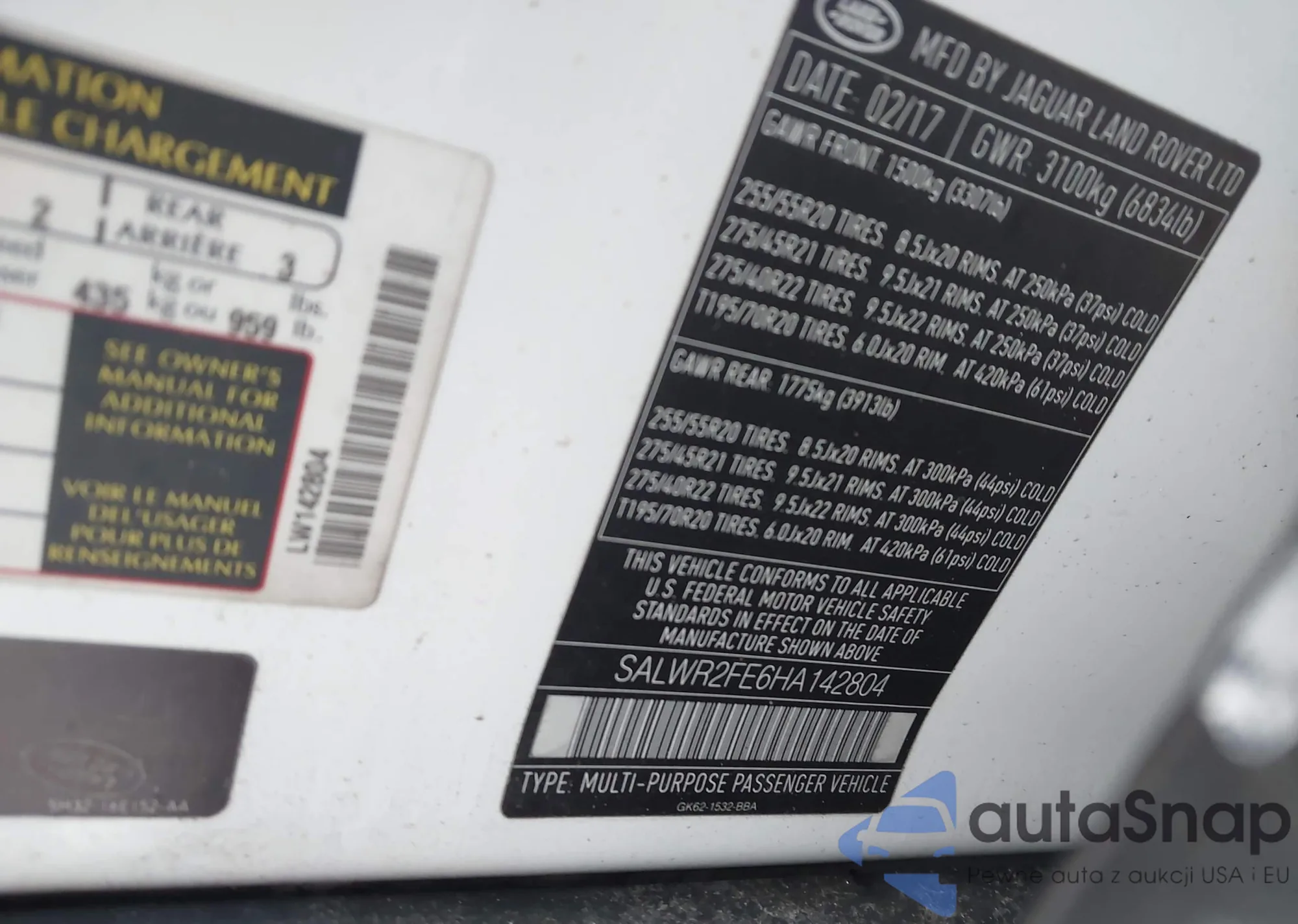 • VIN: SALWR2FE6HA142804