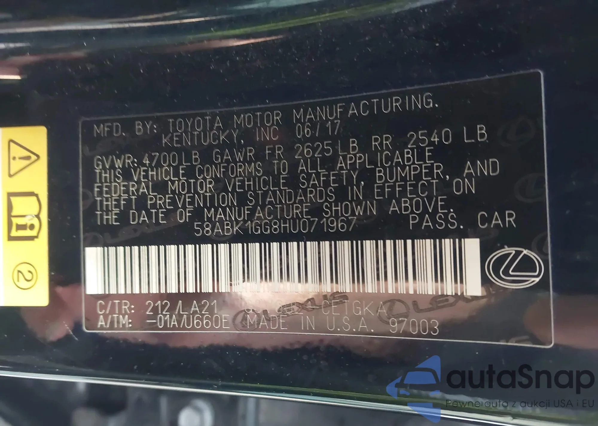 • VIN: 58ABK1GG8HU071967
