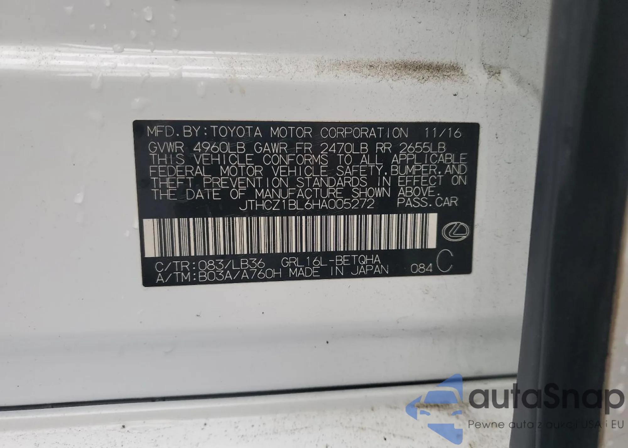 VIN: JTHCZ1BL6HA005272