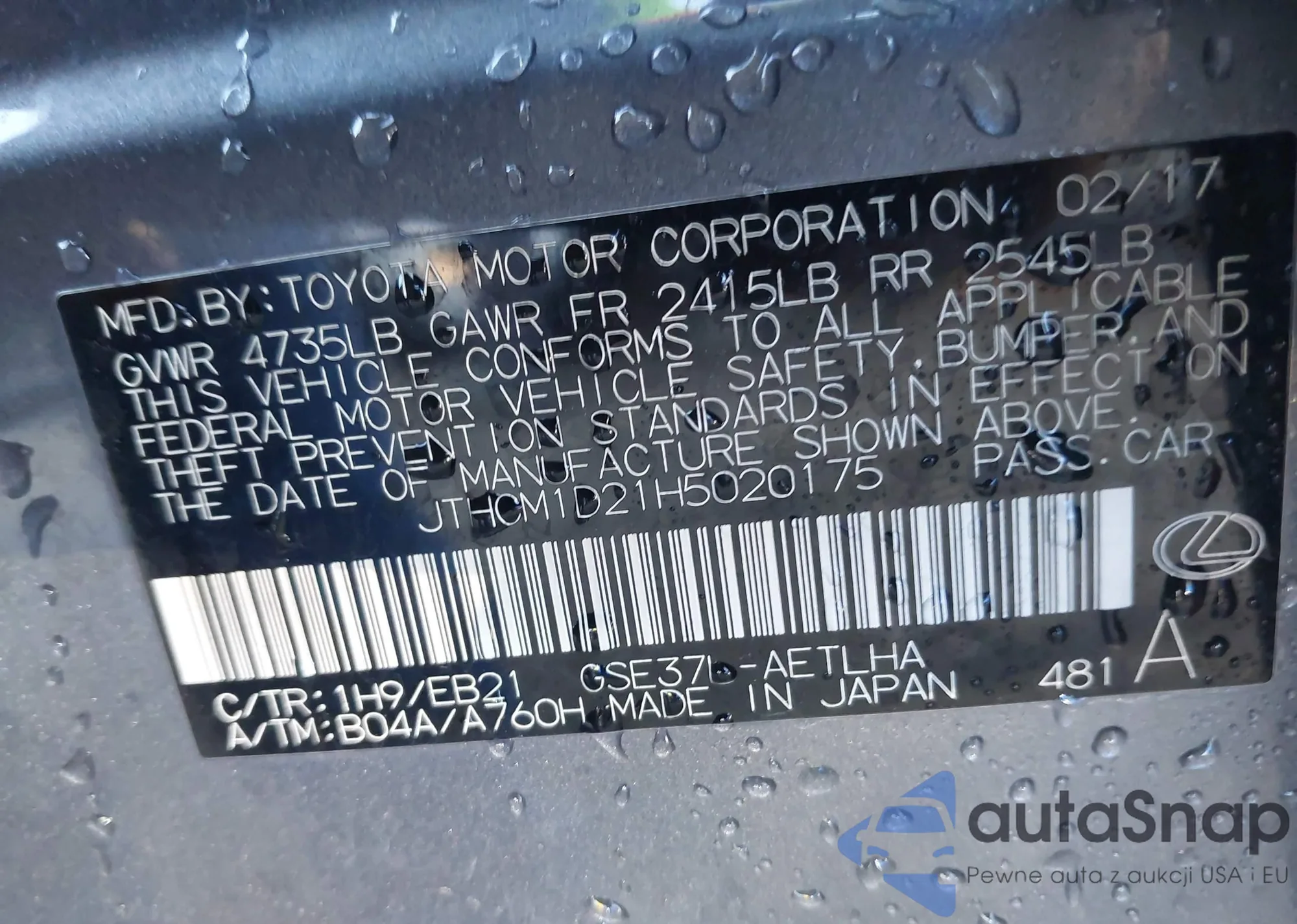 VIN: JTHCM1D21H5020175