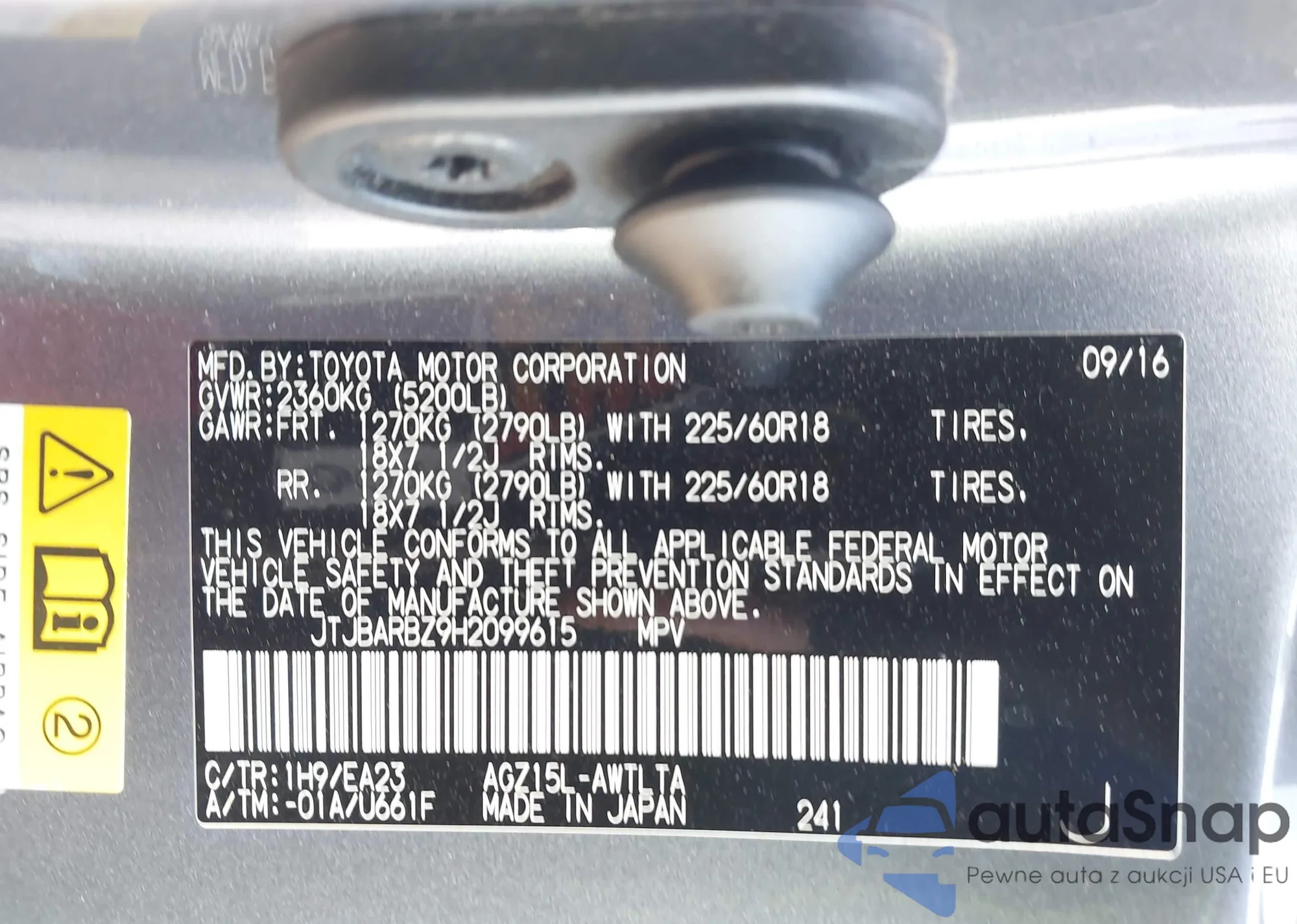 • VIN: JTJBARBZ9H2099615