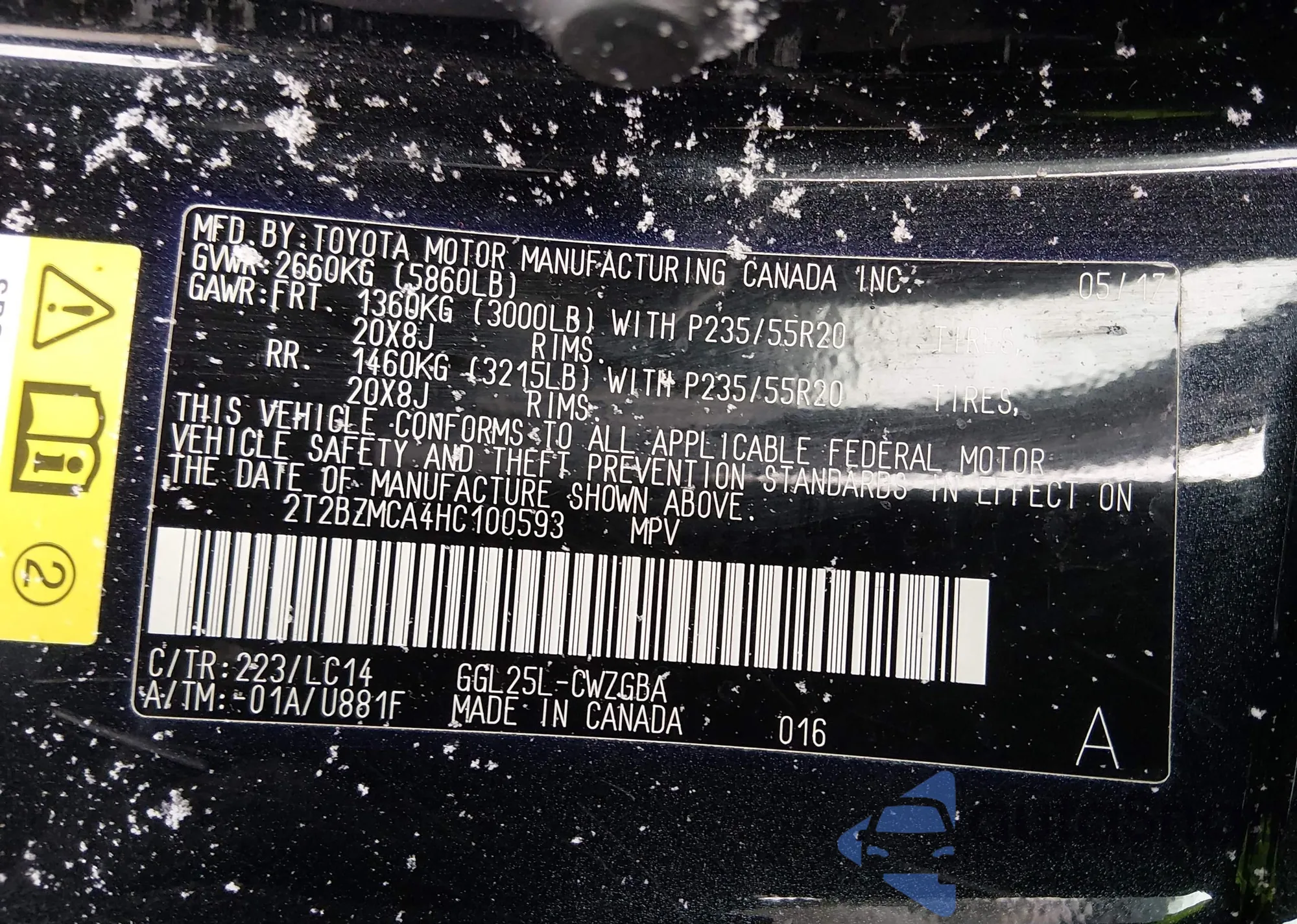 • VIN: 2T2BZMCA4HC100593