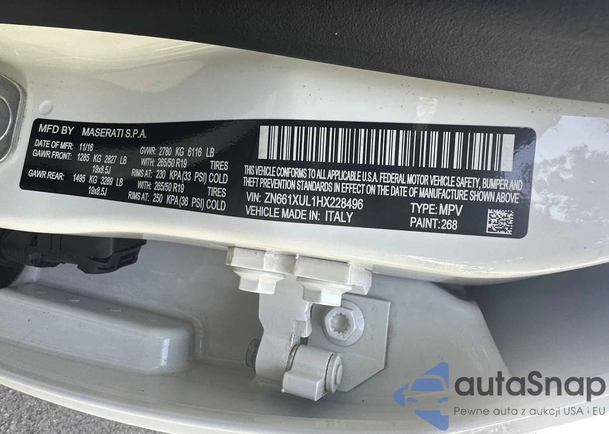 The car Maserati Levante 2017 (VIN ZN661XUL1HX228496) has already been auctioned 0 times or is sold by an unverified seller. We recommend checking the Carfax report and confirming registration possibilities before purchase.