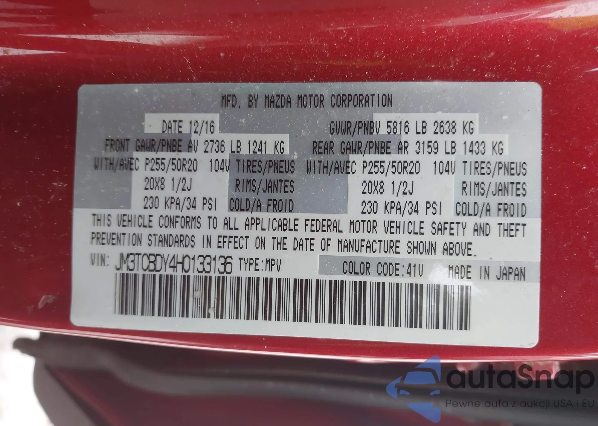 • VIN: JM3TCBDY4H0133136