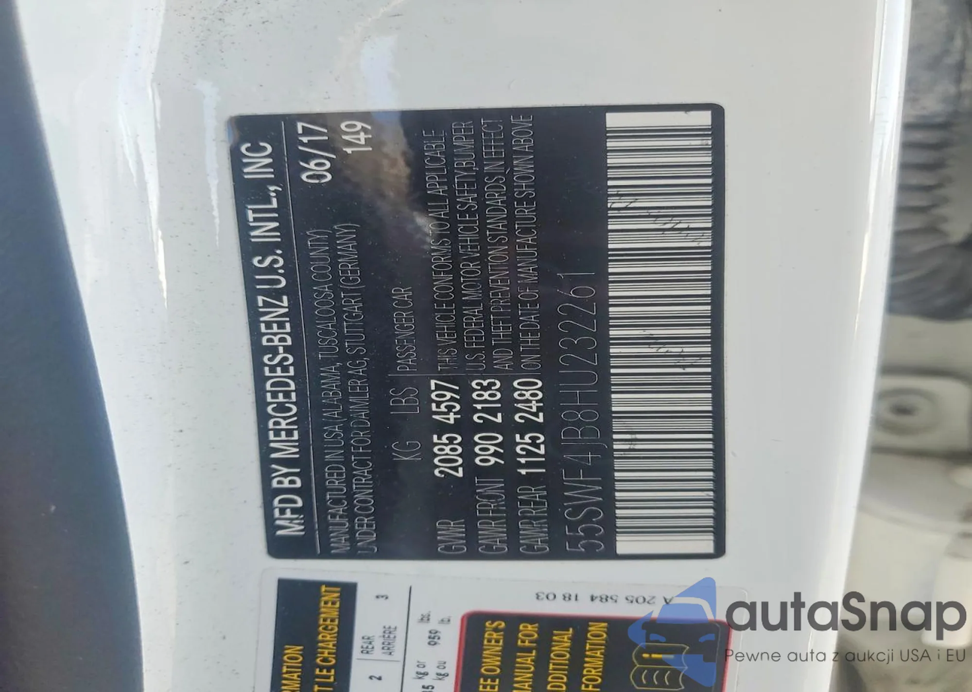 The car Mercedes-Benz C-klasse 2017 (VIN 55SWF4JB8HU232261) is sold by an unverified seller. We recommend checking the Carfax report and confirming registration possibilities before purchase.