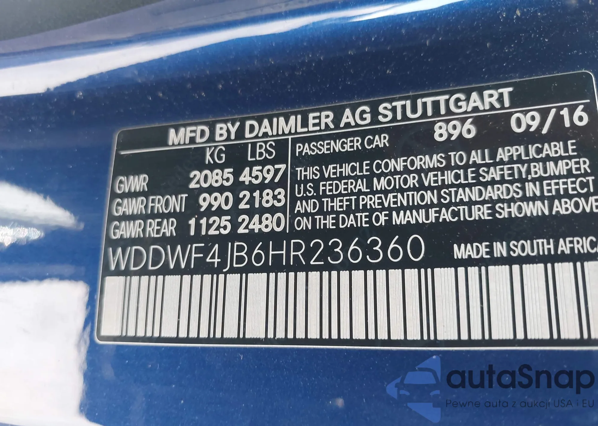 VIN: WDDWF4JB6HR236360