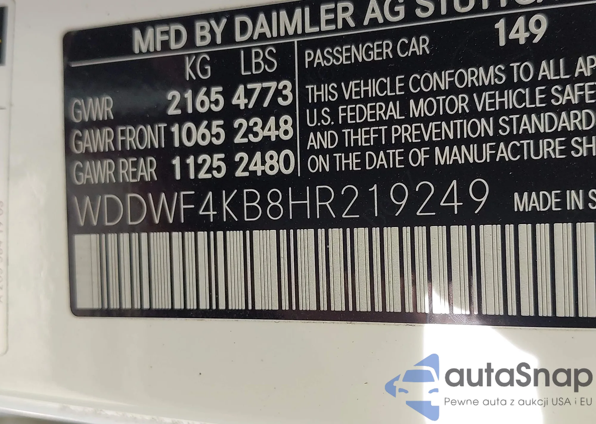 VIN: WDDWF4KB8HR219249