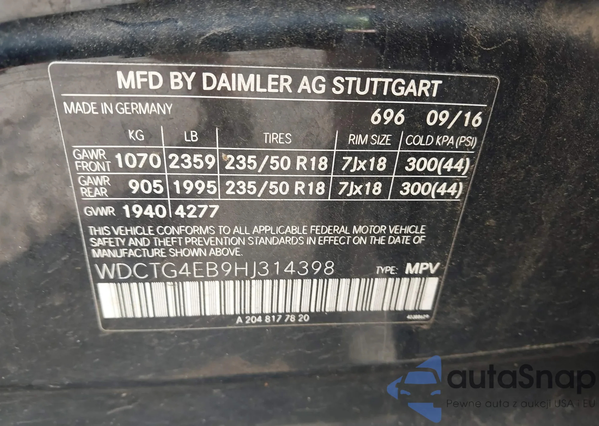 VIN: WDCTG4EB9HJ314398