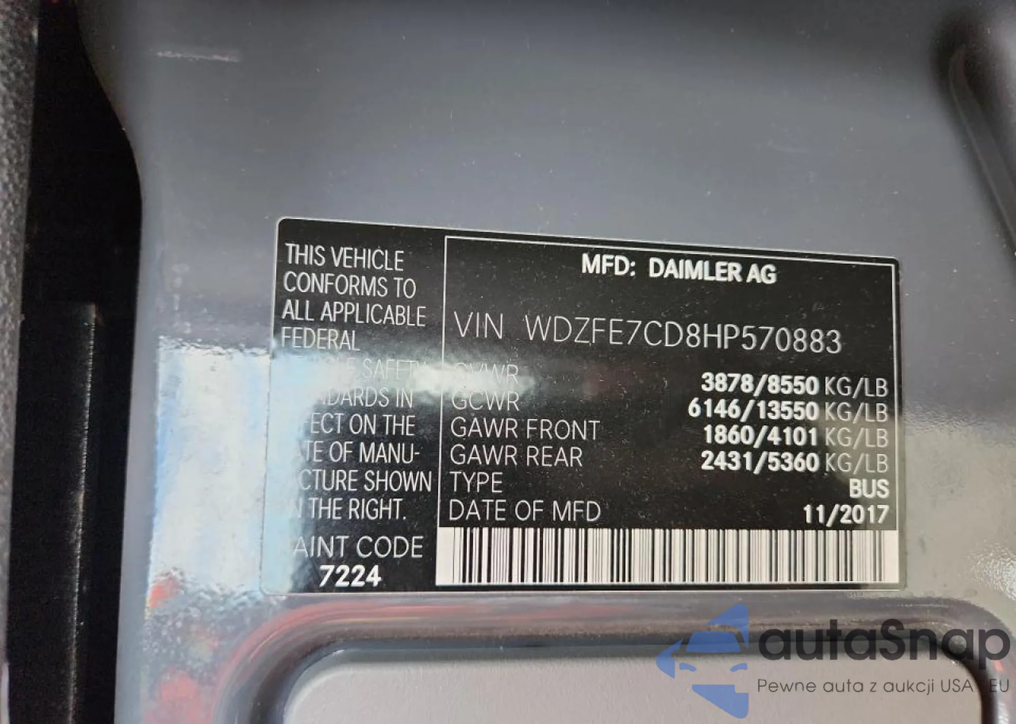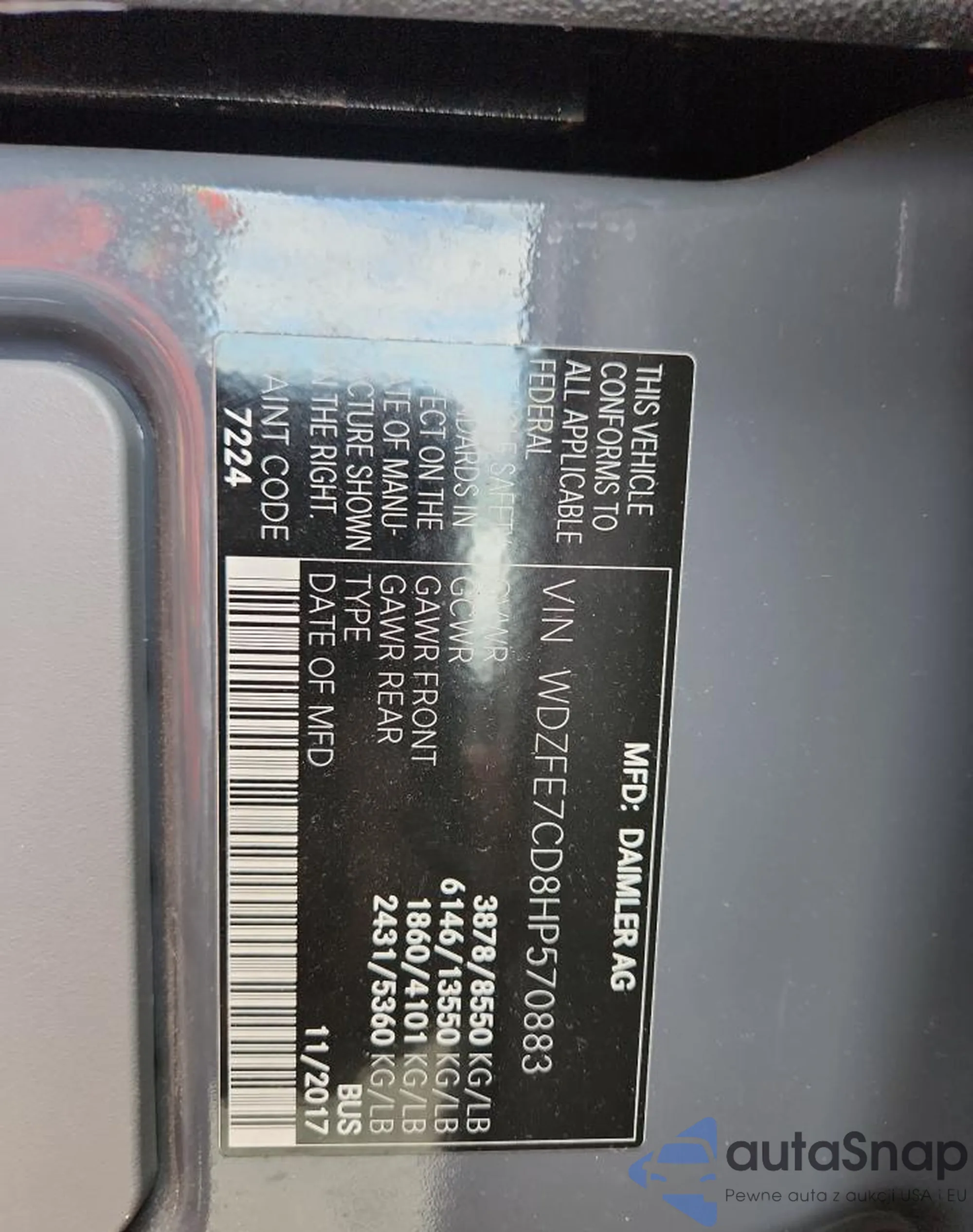 The car Mercedes-Benz Sprinter 2017 (VIN WDZFE7CD8HP570883) is sold by an unverified seller. We recommend checking the Carfax report and confirming registration possibilities before purchase.