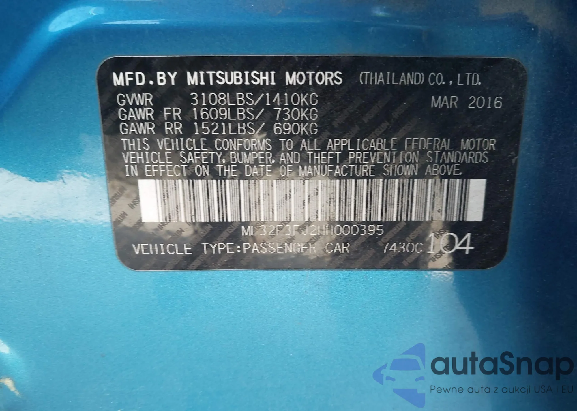 The car Mitsubishi Mirage 2017 (VIN ML32F3FJ2HH000395) is sold by an unverified seller. We recommend checking the Carfax report and confirming registration possibilities before purchase.