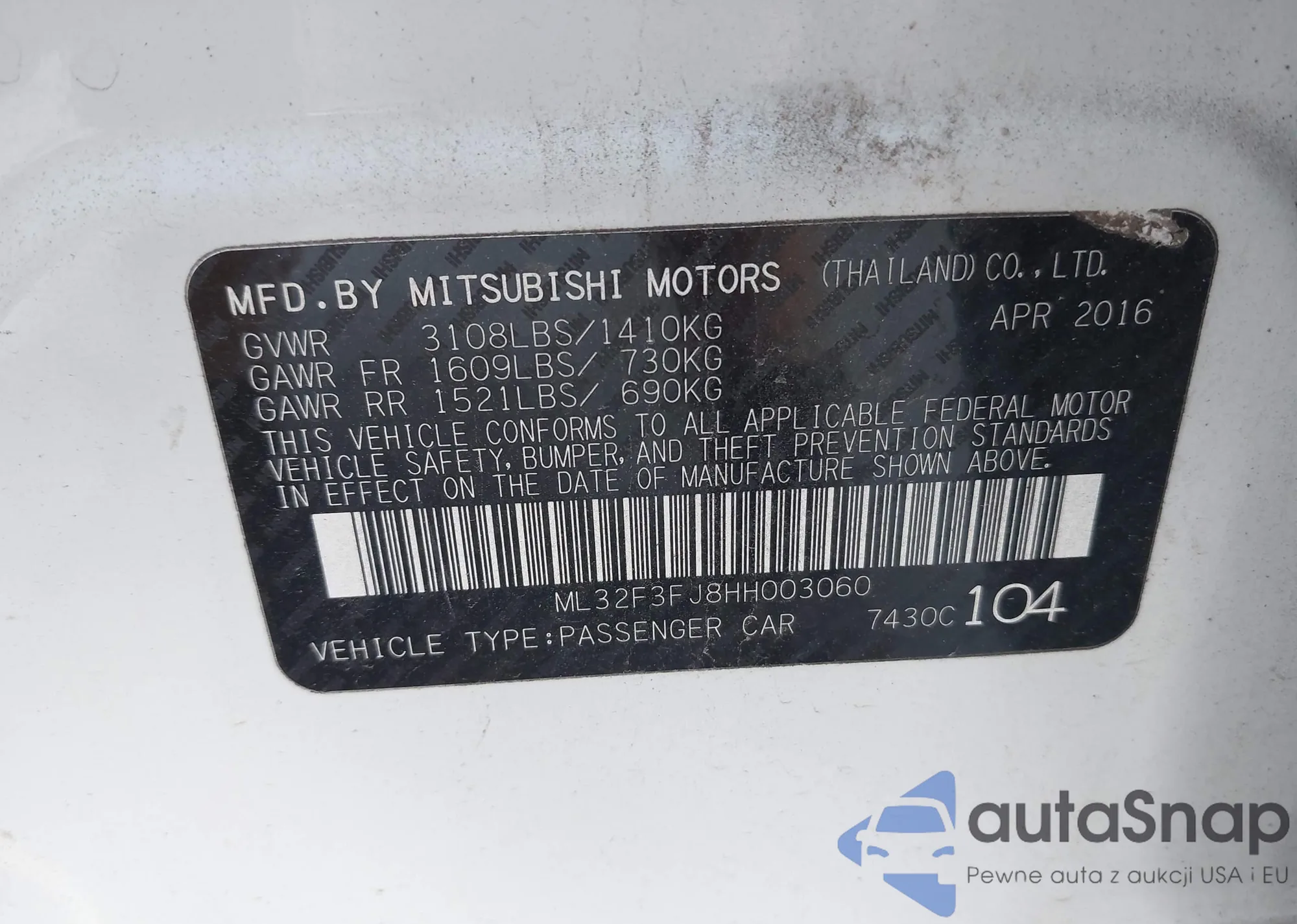 VIN: ML32F3FJ8HH003060