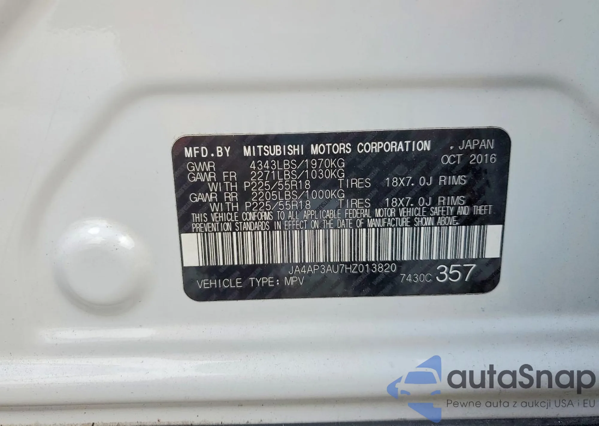 The car Mitsubishi Outlander 2017 (VIN JA4AP3AU7HZ013820) has already been auctioned 1 times and/or is sold by an unverified seller. We recommend checking the Carfax report and confirming registration possibilities before purchase.