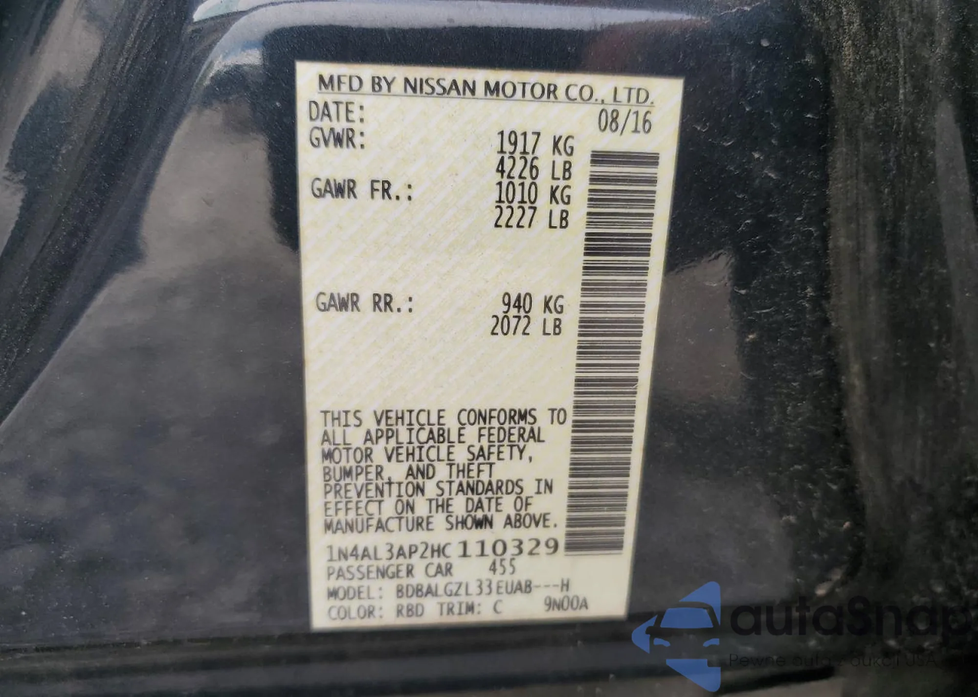 • VIN: 1N4AL3AP2HC110329