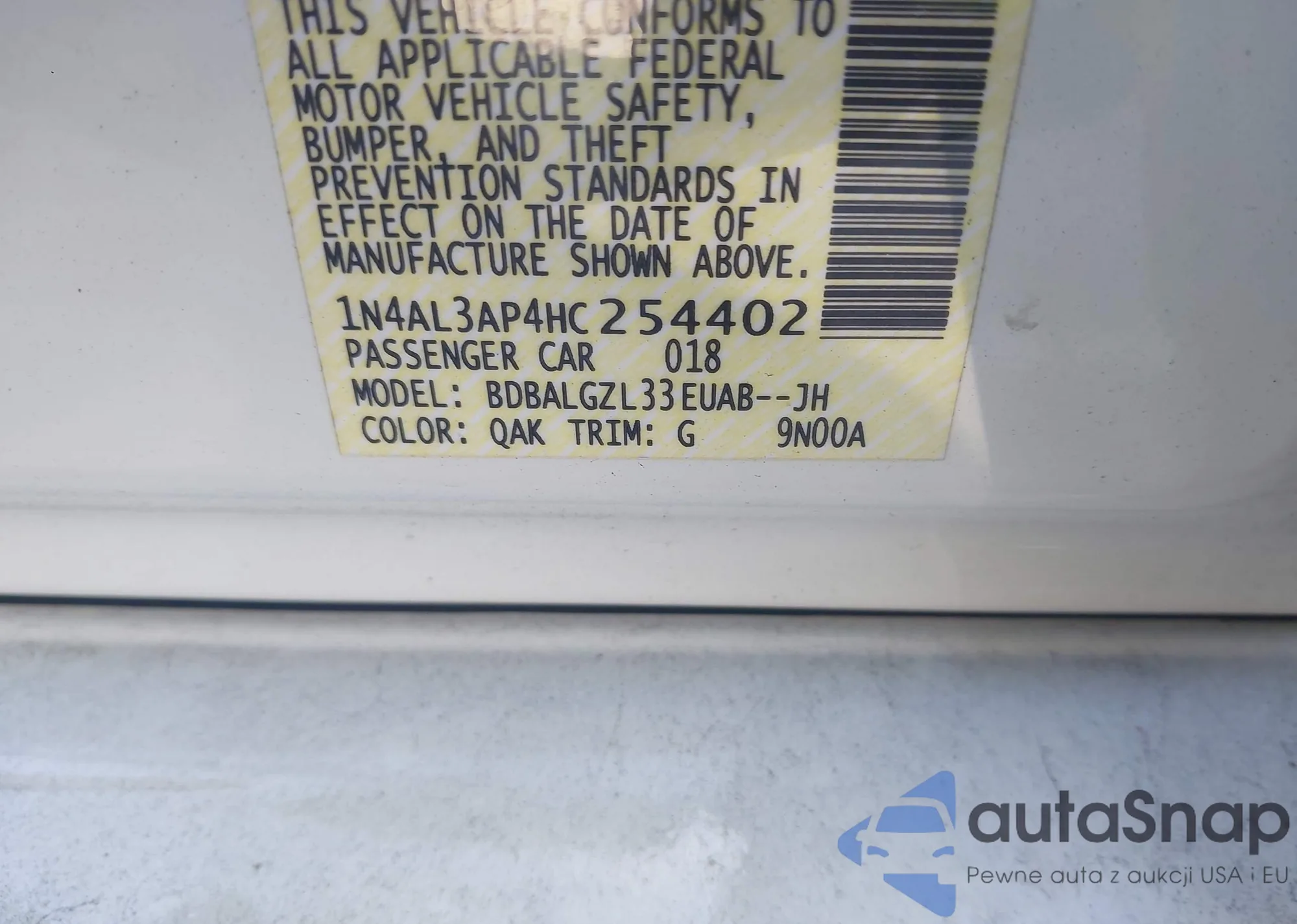 VIN: 1N4AL3AP4HC254402