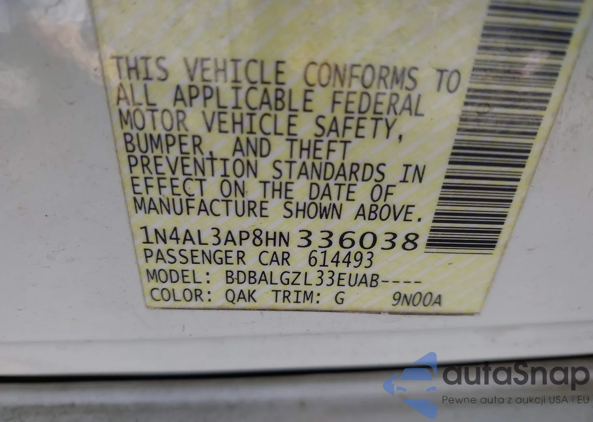 • VIN: 1N4AL3AP8HN336038