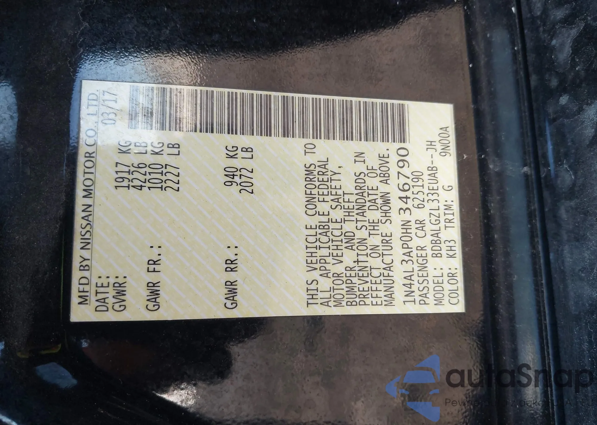 VIN: 1N4AL3AP0HN346790