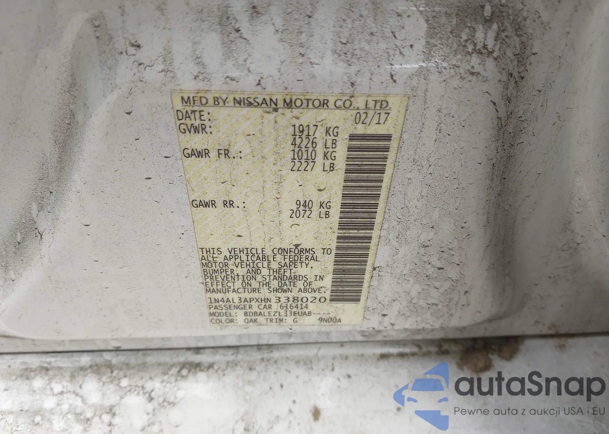 VIN: 1N4AL3APXHN338020