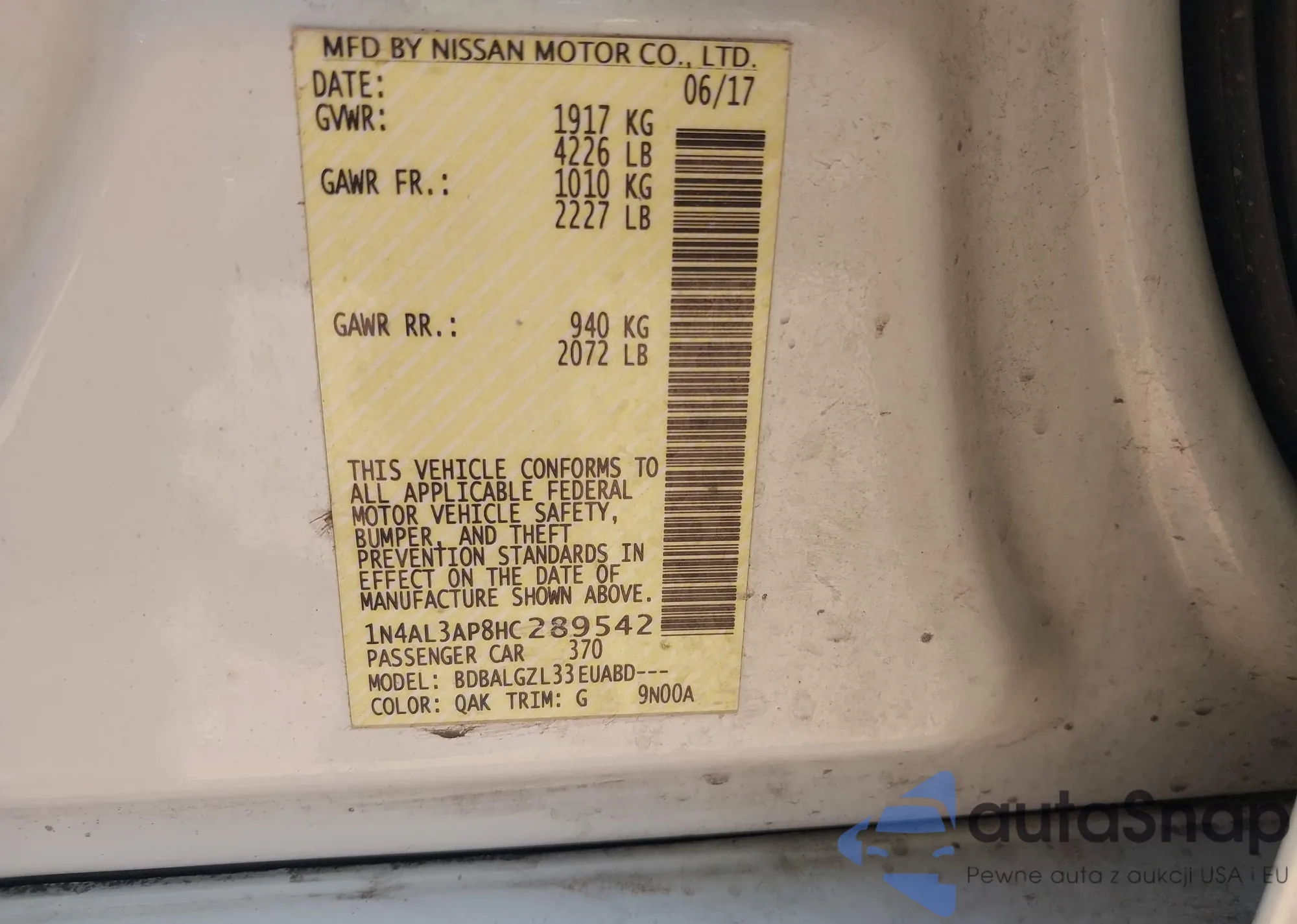 VIN: 1N4AL3AP8HC289542