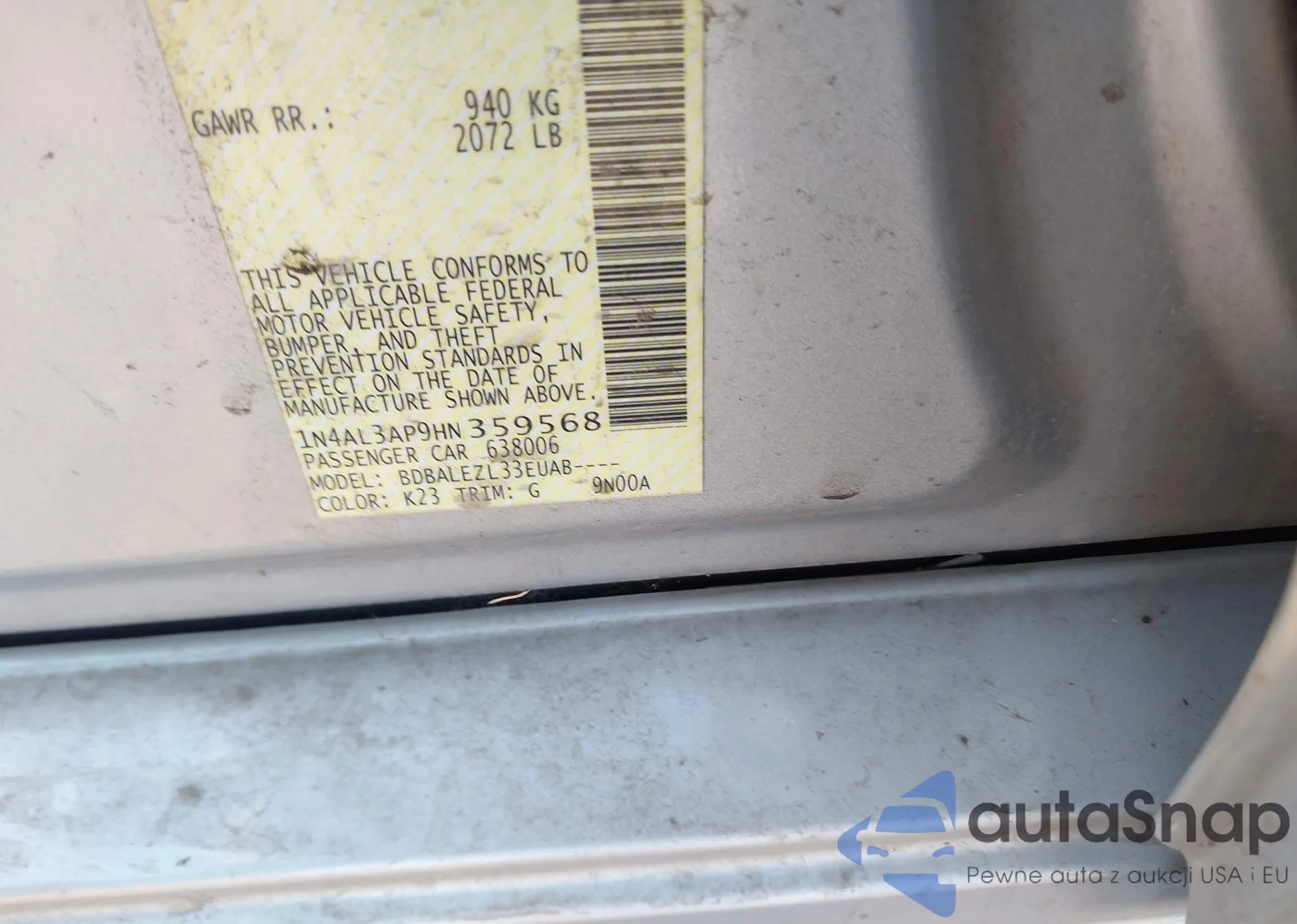 • VIN: 1N4AL3AP9HN359568