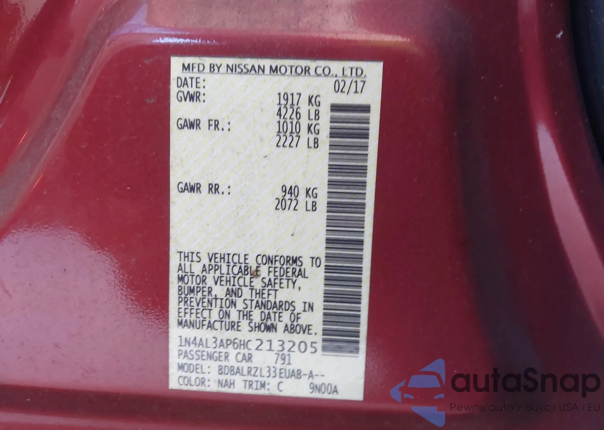 VIN: 1N4AL3AP6HC213205