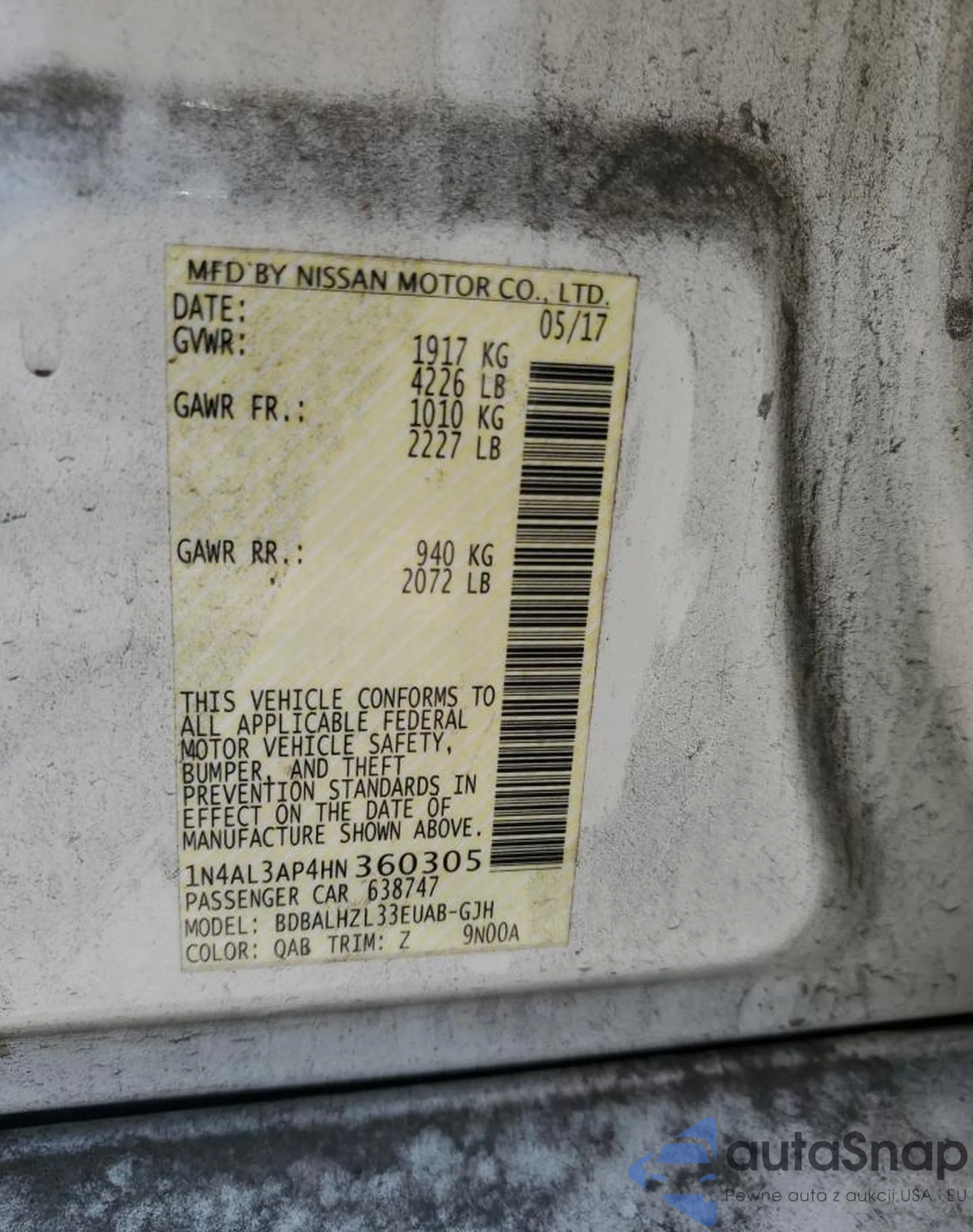 VIN: 1N4AL3AP4HN360305