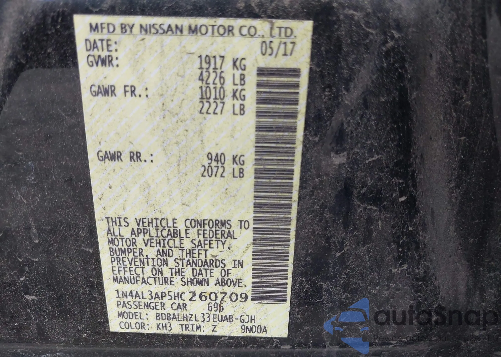 VIN: 1N4AL3AP5HC260709
