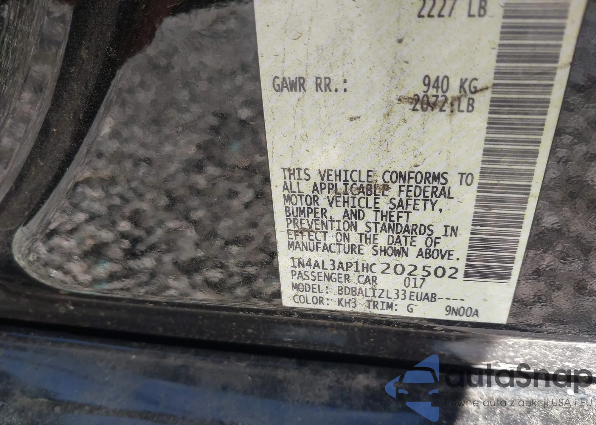 The car Nissan Altima 2017 (VIN 1N4AL3AP1HC202502) has already been auctioned 1 times and/or is sold by an unverified seller. We recommend checking the Carfax report and confirming registration possibilities before purchase.